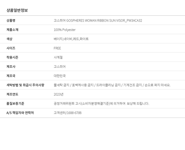 | 6. 취급시 주의사항 | 물세탁 금지 / 표백제사용 금지 / 드라이클리닝 금지 / 기계건조 금지 / 손으로 짜지 마세요. |