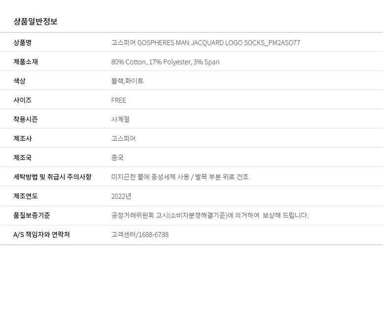 | 2. 소재 | 80% Cotton, 17% Polyester, 3% Span |