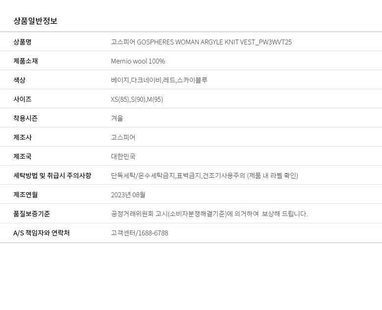 고스피어 GOSPHERES WOMAN ARGYLE KNIT VEST_PW3WVT25