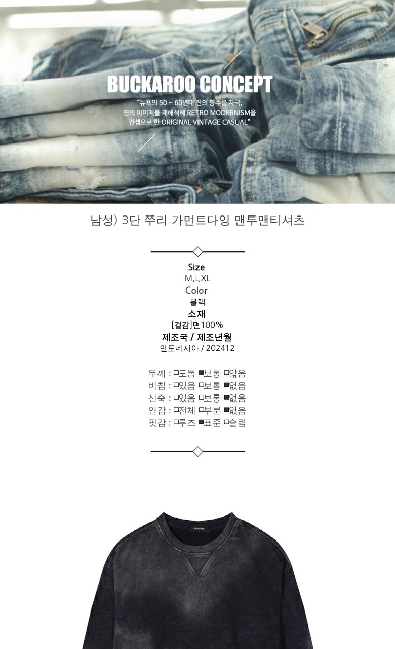 [버커루] 남성) 3단 쭈리 가먼트다잉 맨투맨티셔츠 (B251TS310P)