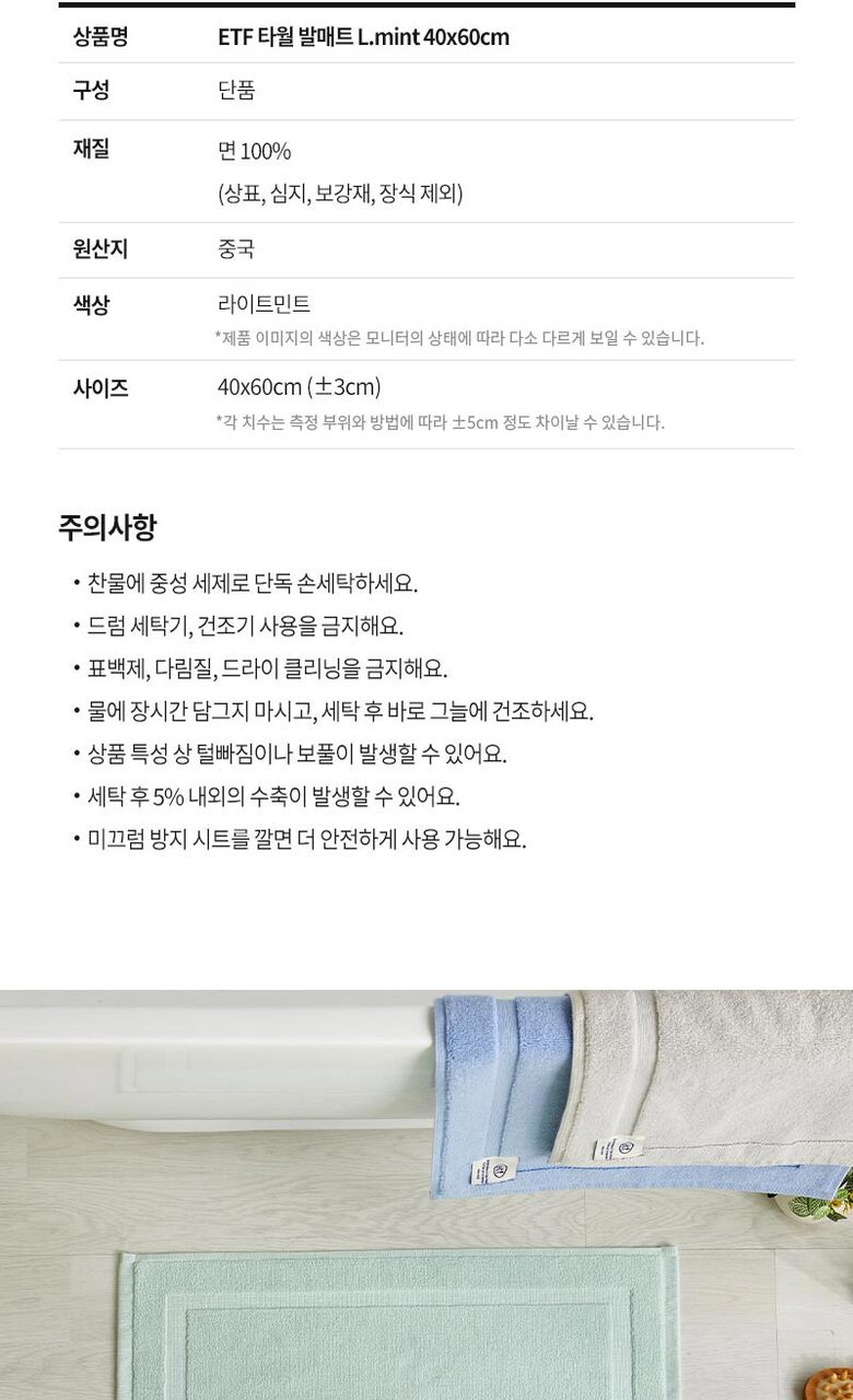 모던하우스 ETF 타월 발매트 L.mint 40x60cm BG2025019