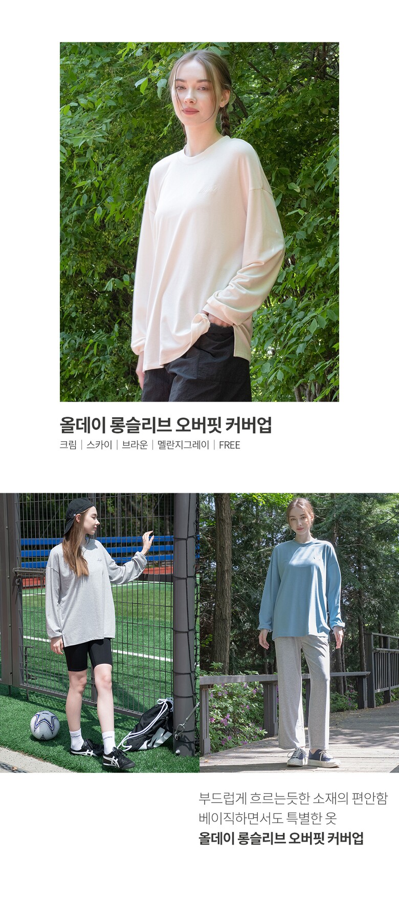 뒤란 올데이 롱슬리브 오버핏 커버업 티셔츠 DTF4W-4142 4colors