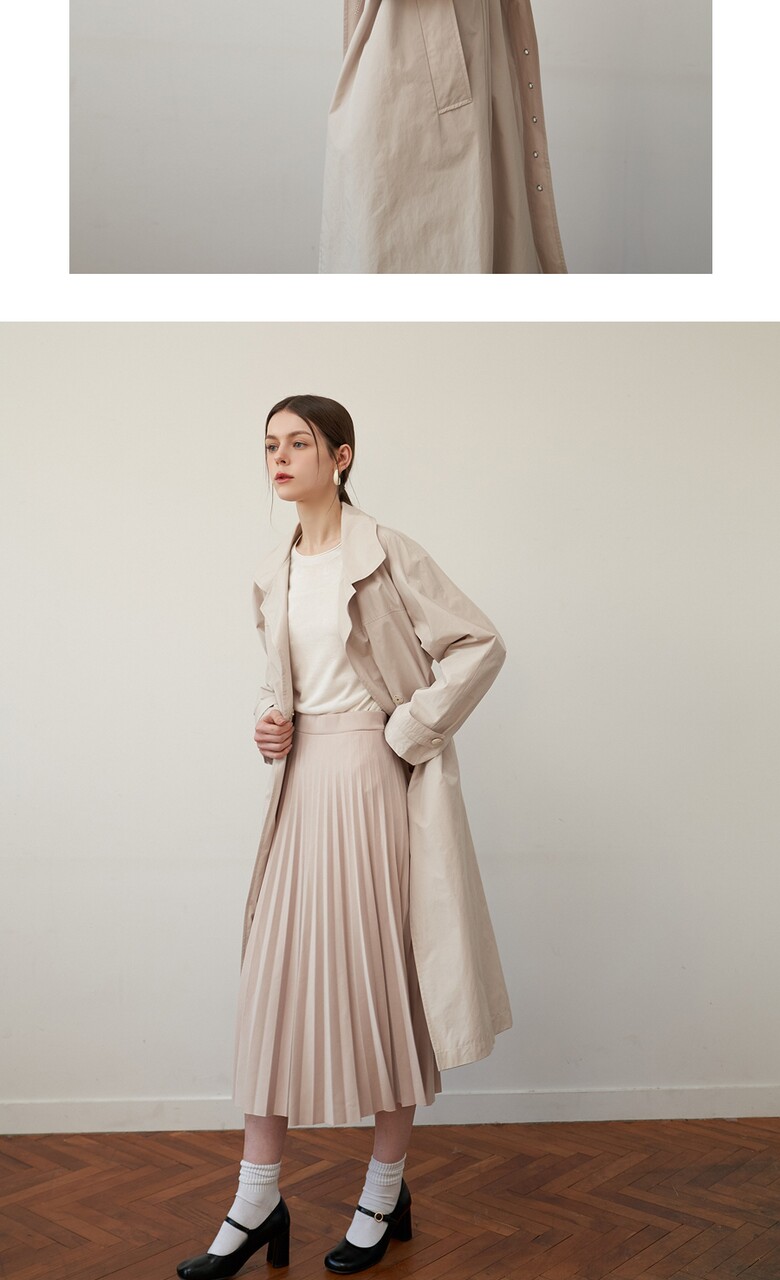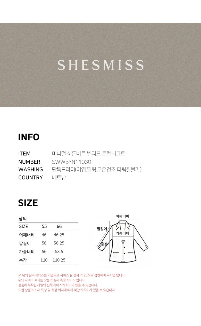 [쉬즈미스(SHESMISS)] 미니멀 히든버튼 벨티드 트렌치코트 (택가격: 428000원)