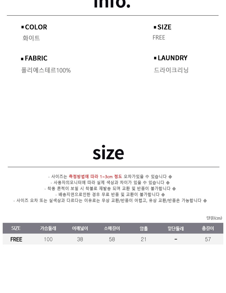 | 1. 제품 소재 (섬유의 조성 또는 혼용률을 백분율로 표시, 기능성인 경우 성적서 또는 허가서) | 상세페이지 참조 |