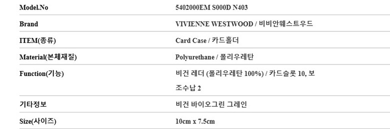 비비안웨스트우드 5402000EM S000D N403 비건 바이오그린 그레인 카드지갑