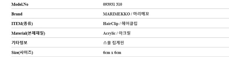 마리메꼬 093931 310 우니꼬 스몰 집게핀 헤어클립