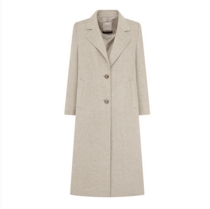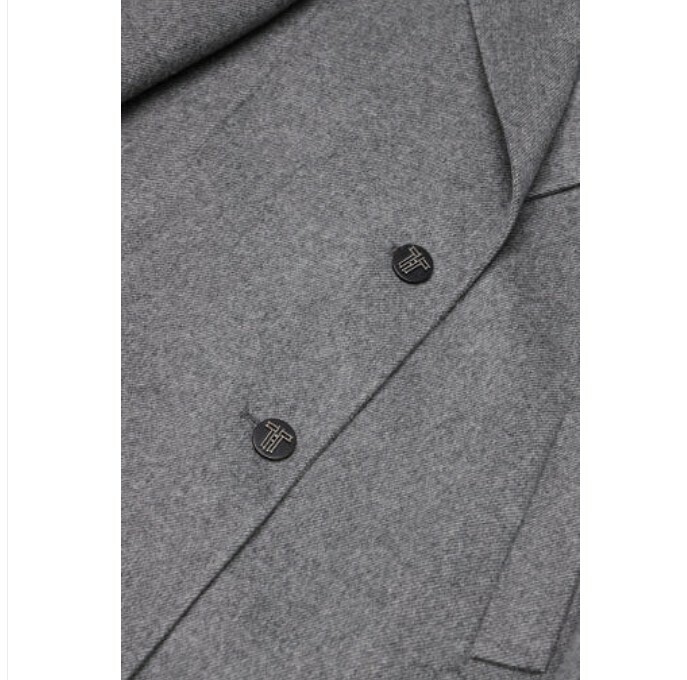 베이직한 투버튼 디자인과 스트레이트 핏으로 떨어지는 핸드메이드 코트입니다.