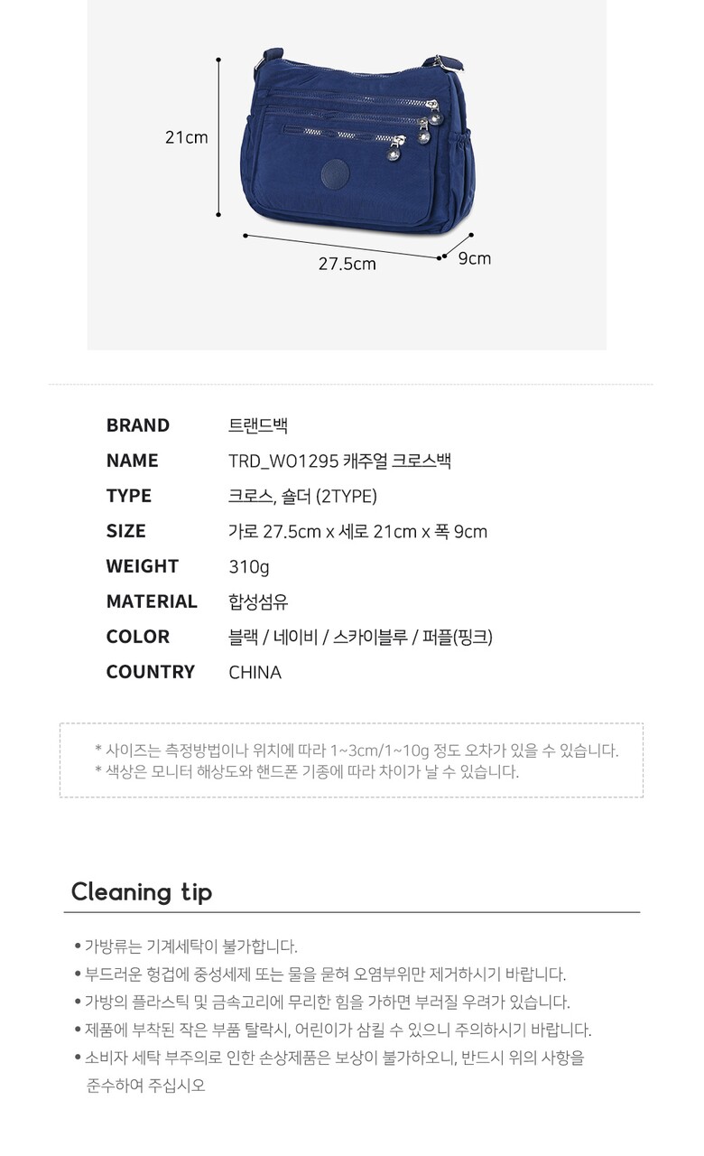 레네 중년 여성 가벼운 포켓 데일리 크로스백 가방 L92810
