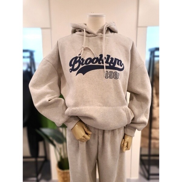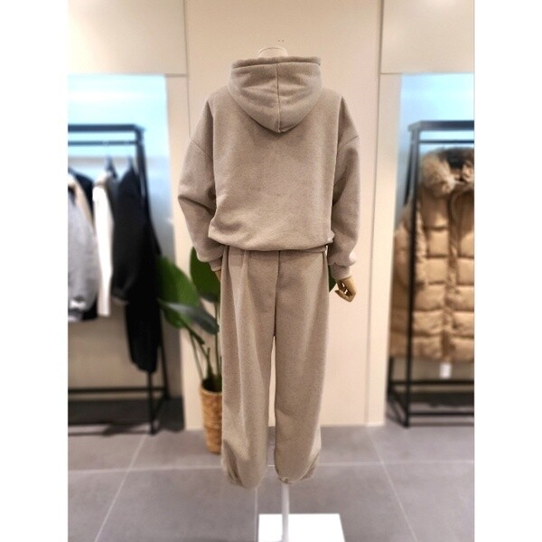 얇은 기모 약기모 원단의 후드맨투맨 조거팬츠 세트입니다.