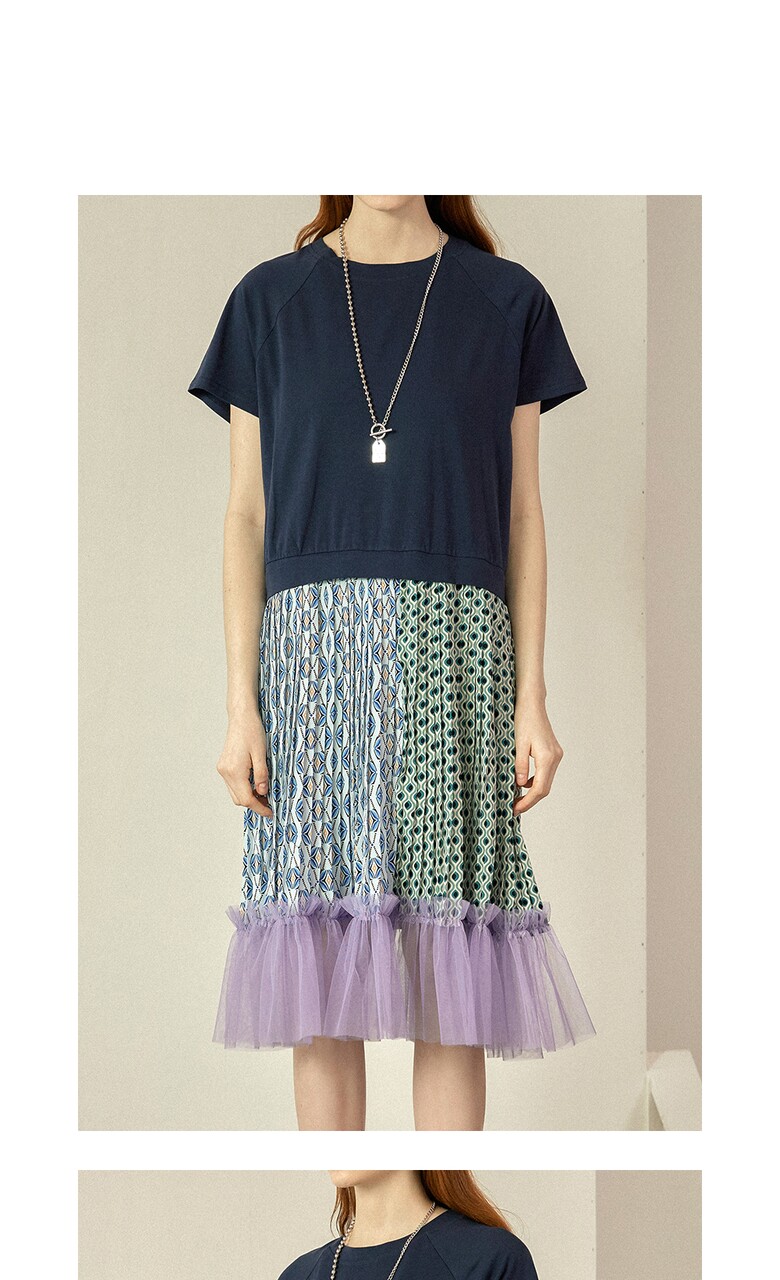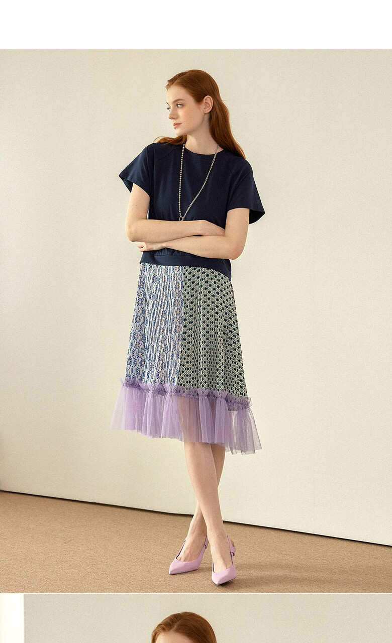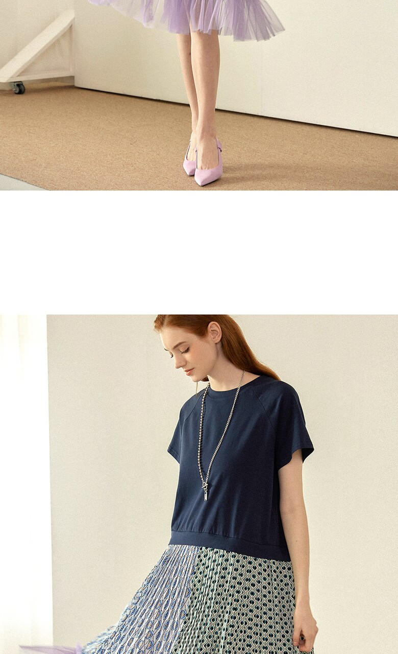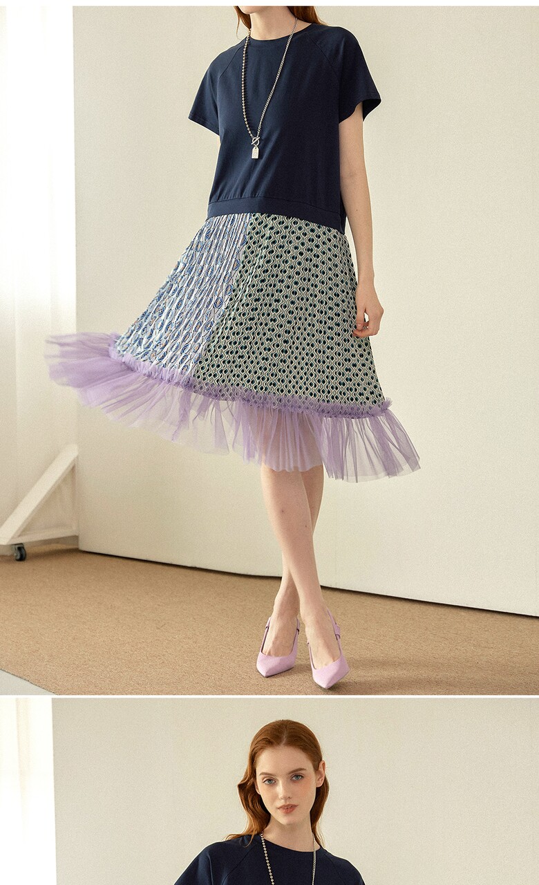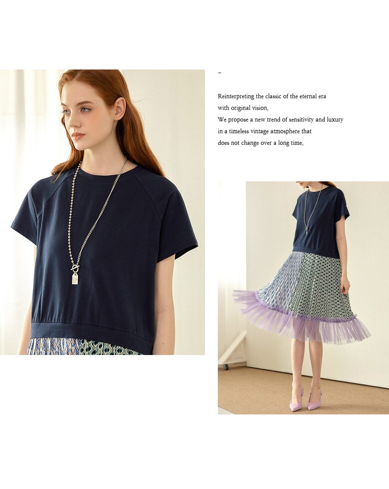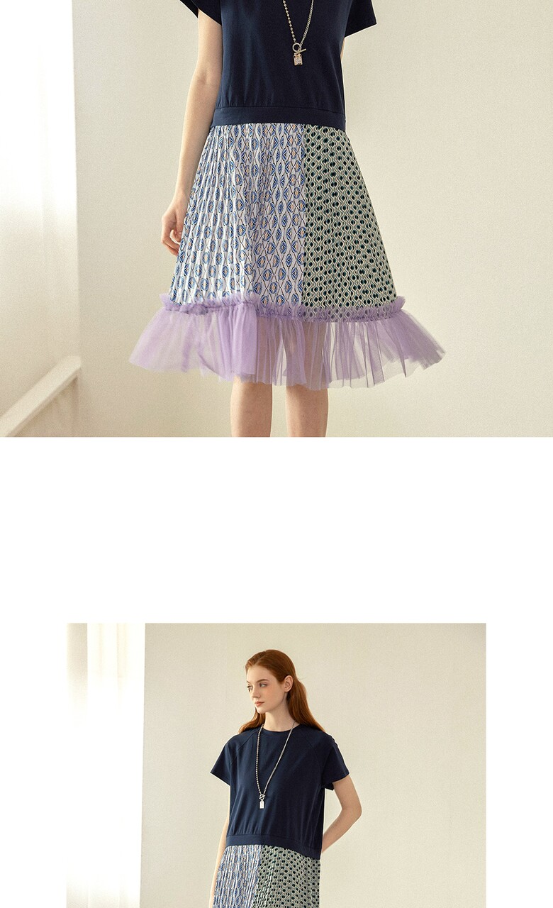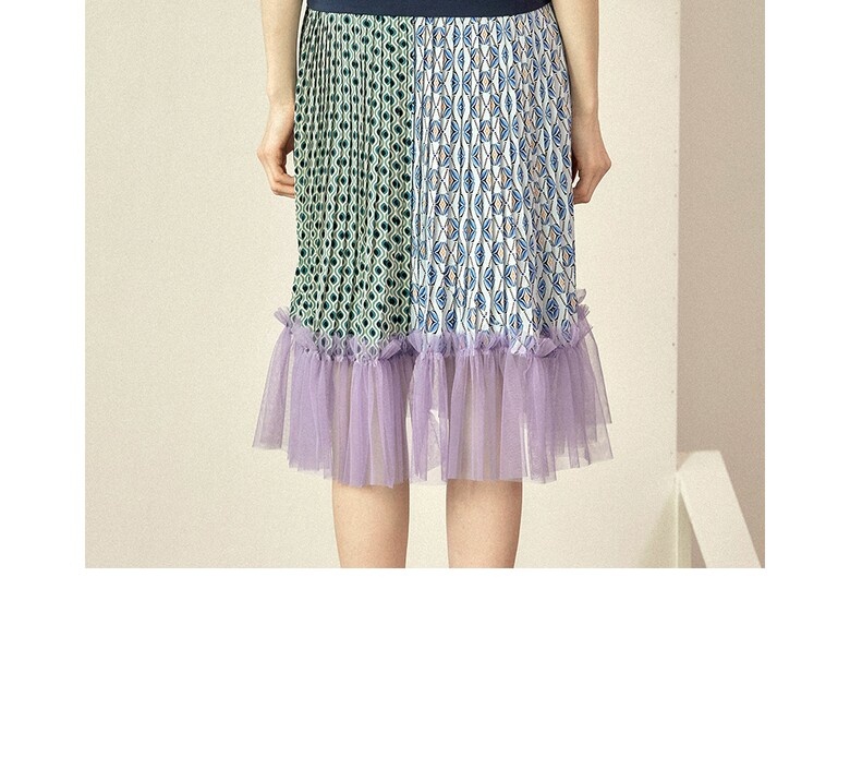 플리츠를 주고, 밑단에는 샤 원단을 배색하여