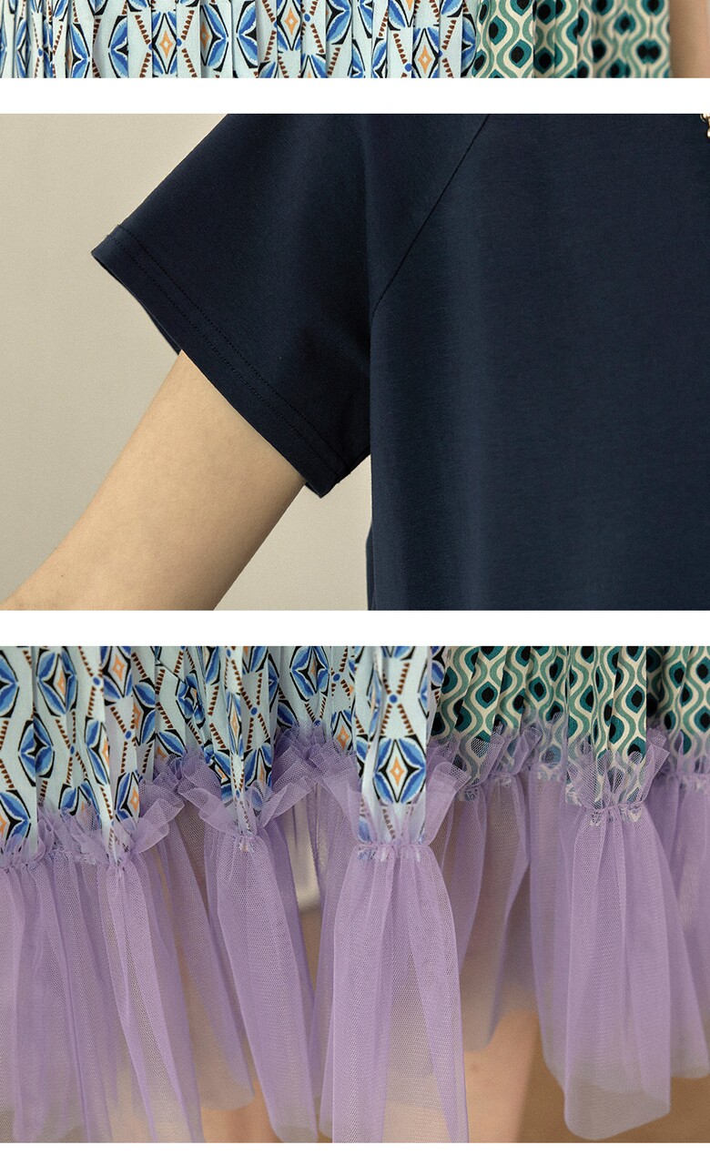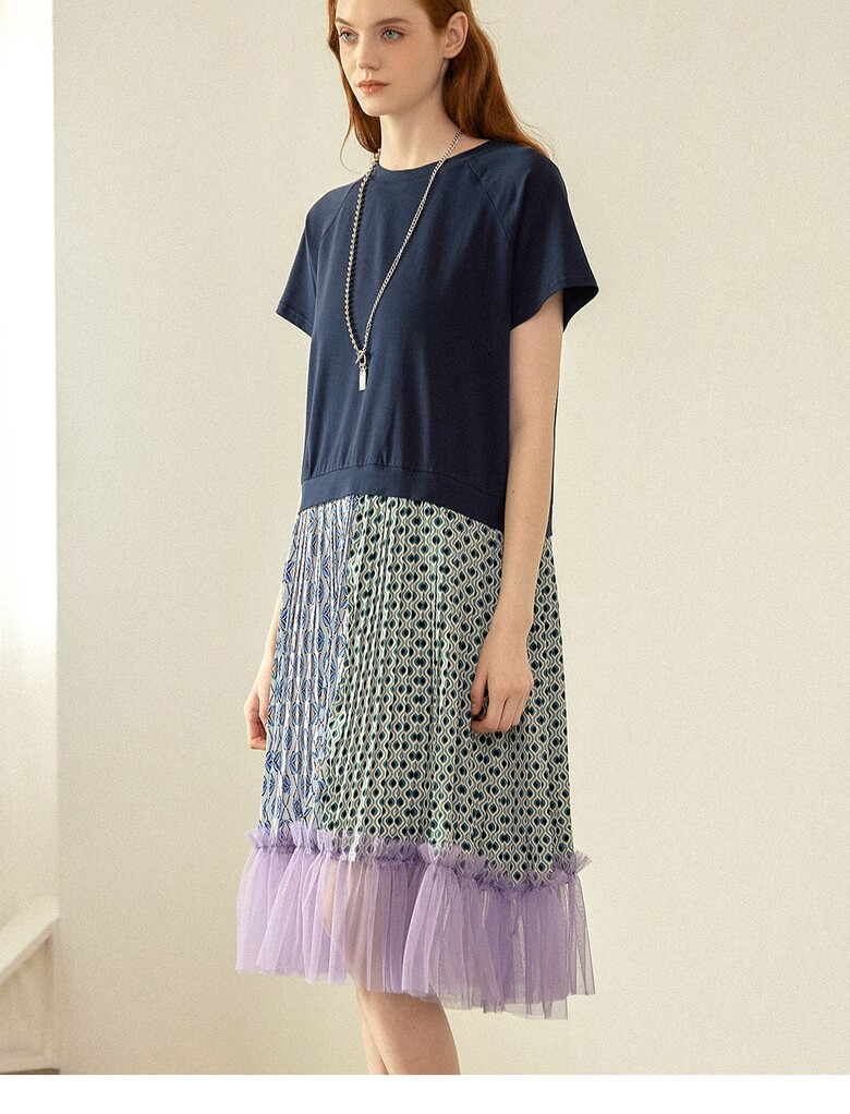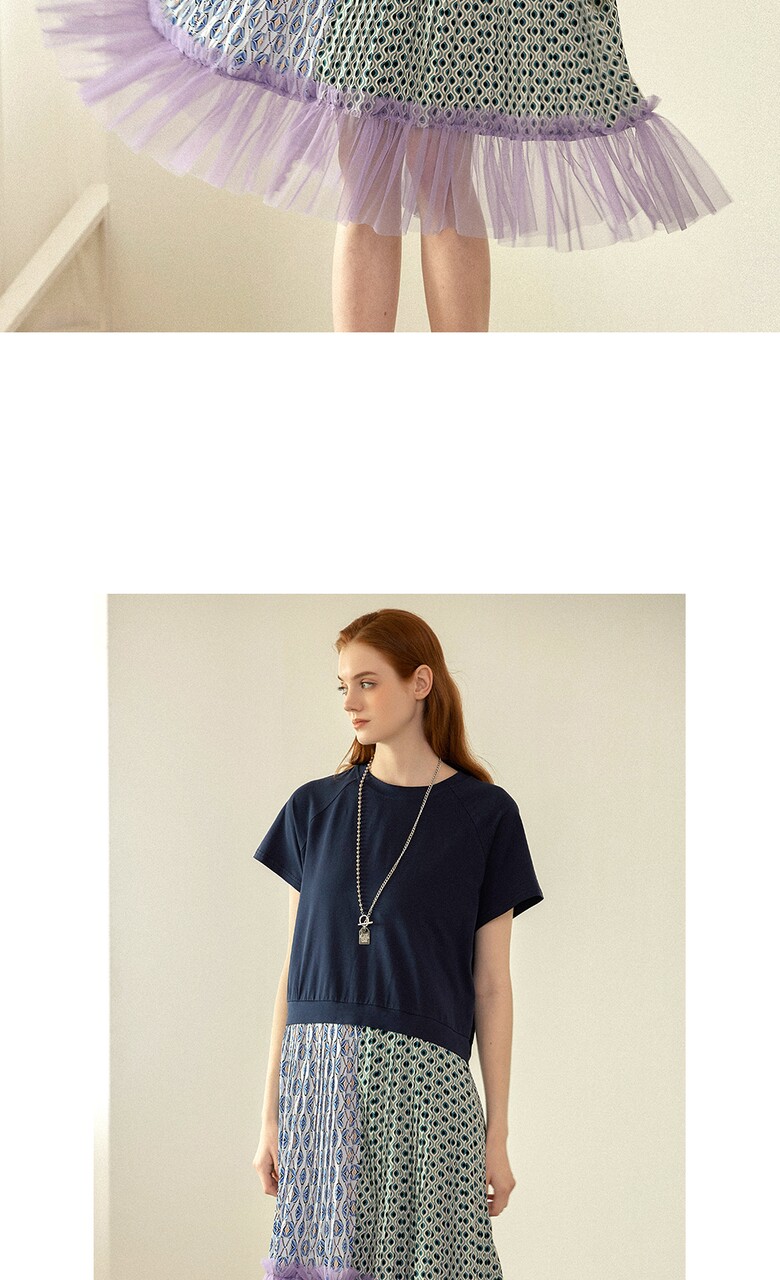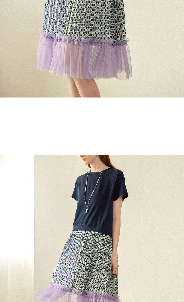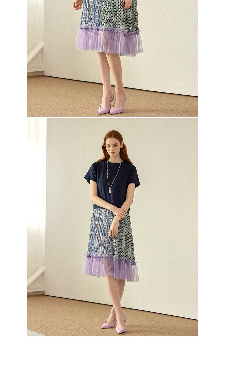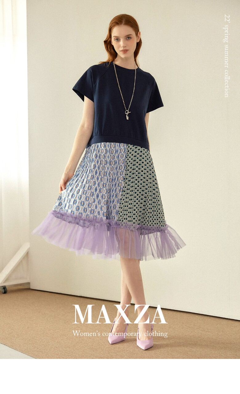 플리츠를 주고, 밑단에는 샤 원단을 배색하여