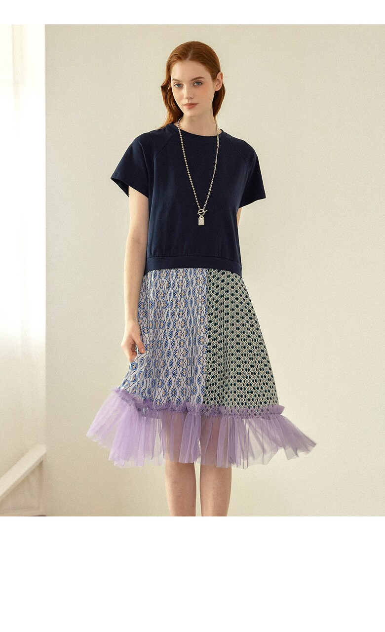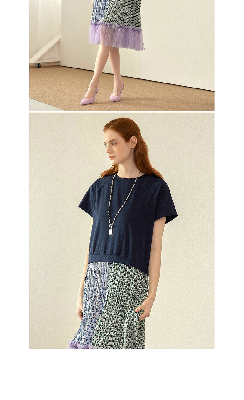 반팔 티셔츠에 스커트를 입은 듯한 원피스입니다.
