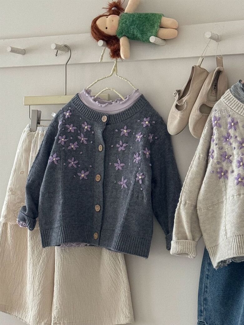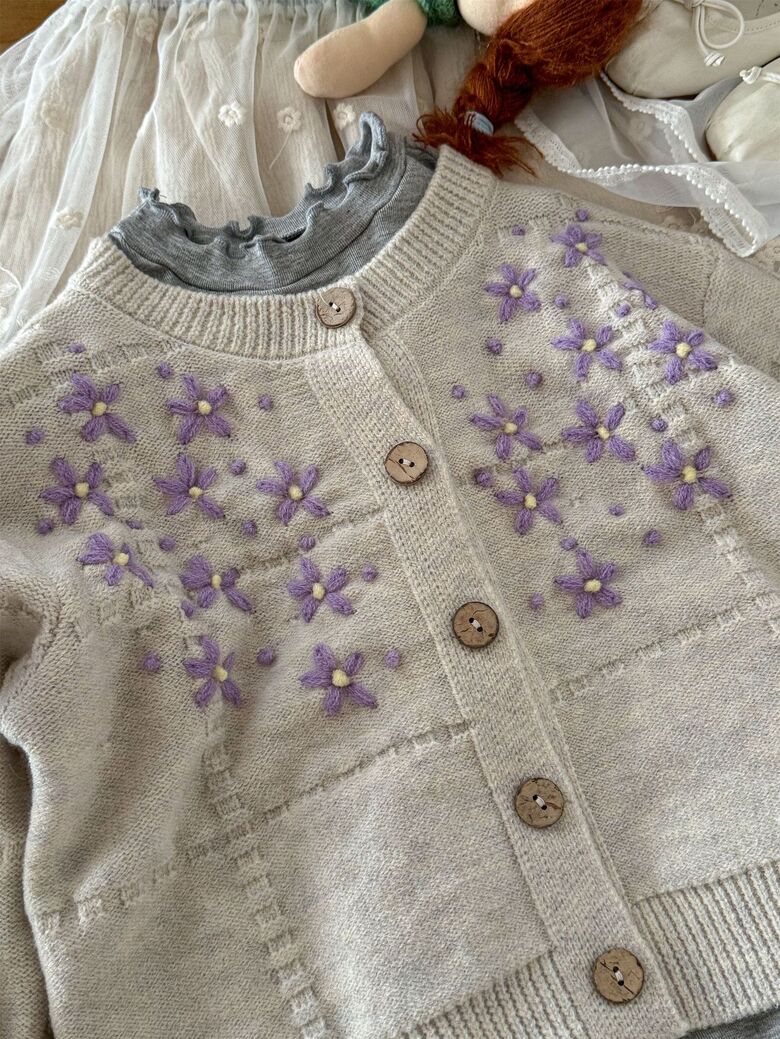 [예약발송] 꽃잎 자수 니트 가디건 R13561