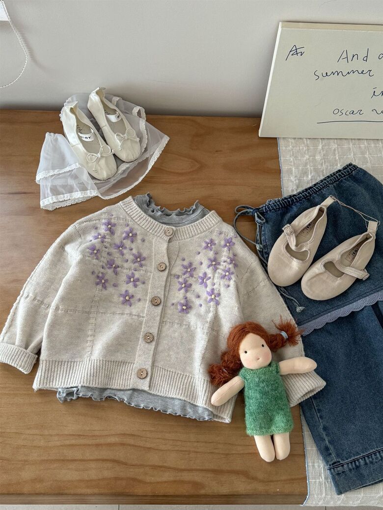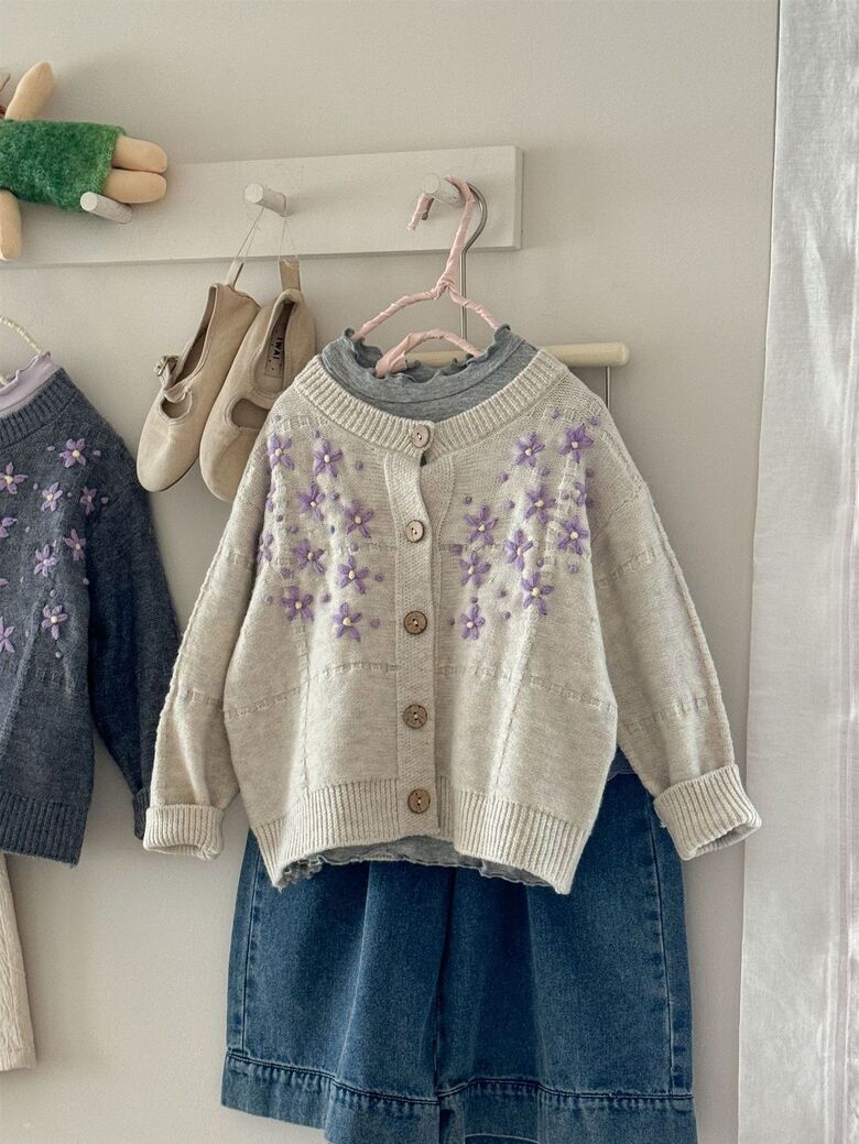 [예약발송] 꽃잎 자수 니트 가디건 R13561
