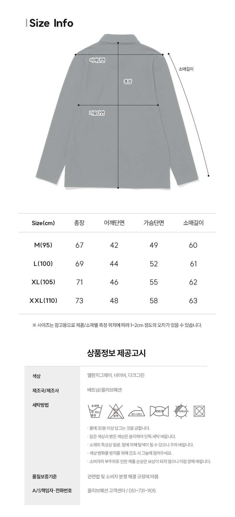 | 6. 세탁방법 및 취급시 주의사항 | 케어라벨 참조 |