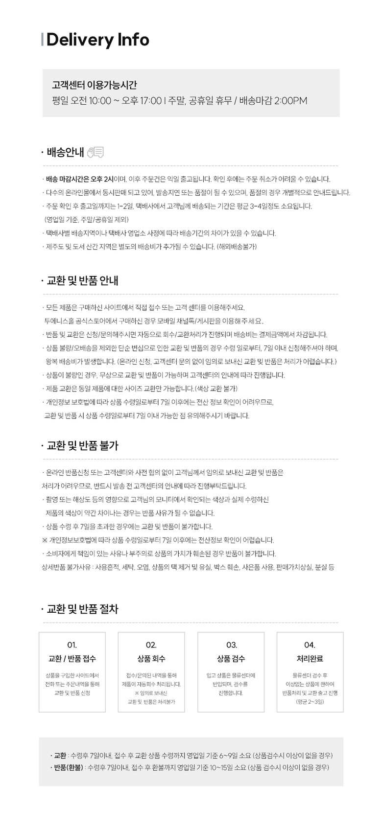 상품불량에 의한 반품, A/S, 품질보증 및 피해보상 등에 관한 사항은 소비자 분쟁해결기준(공정거래위원회 고시) 구매자가 미성년자인 경우에는 상품 구입시 법정대리인이 동의하지 아니하면 미성년자 본인 또는 법정대리인이 구매취소 할 수 있습니다. |