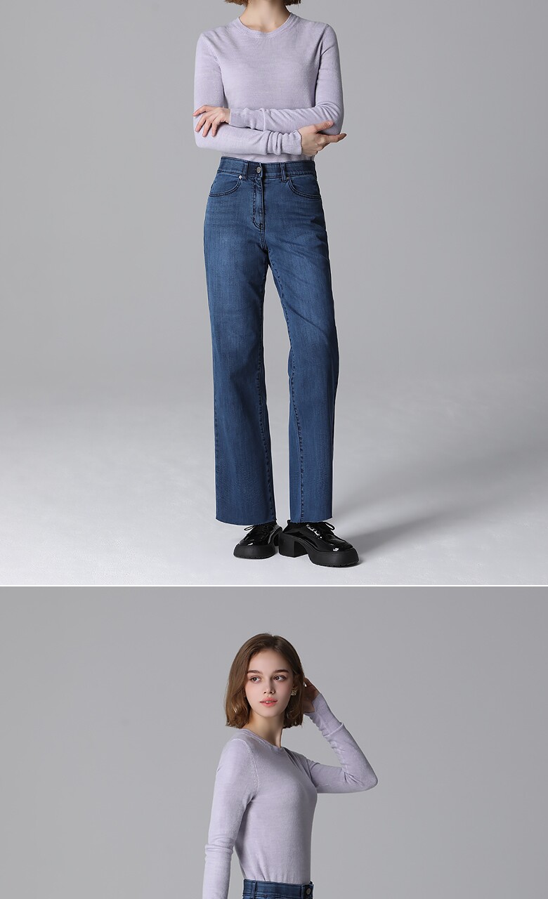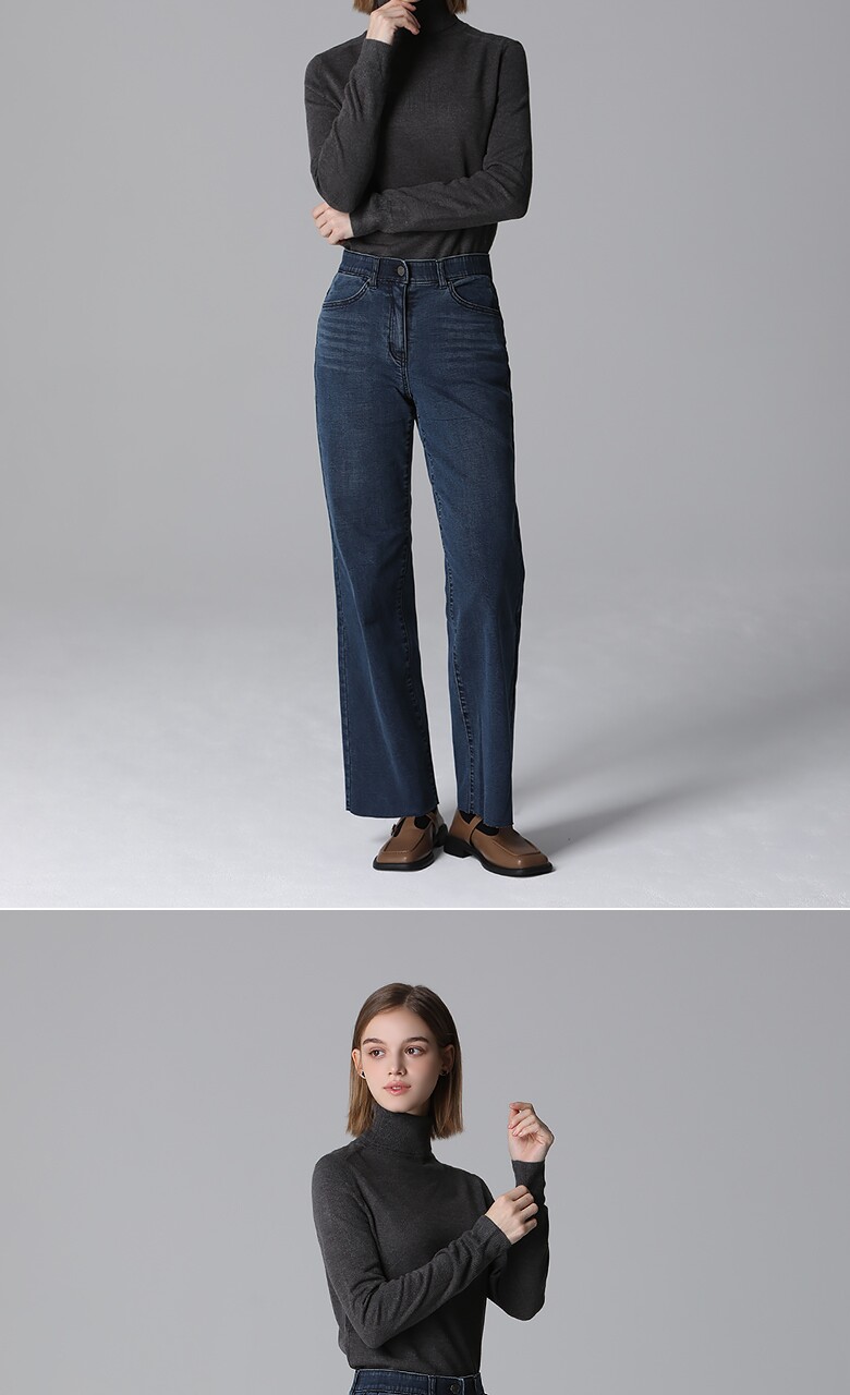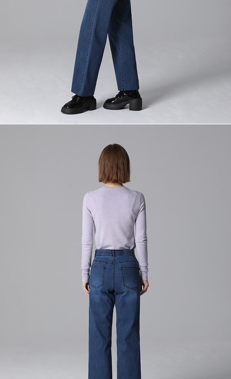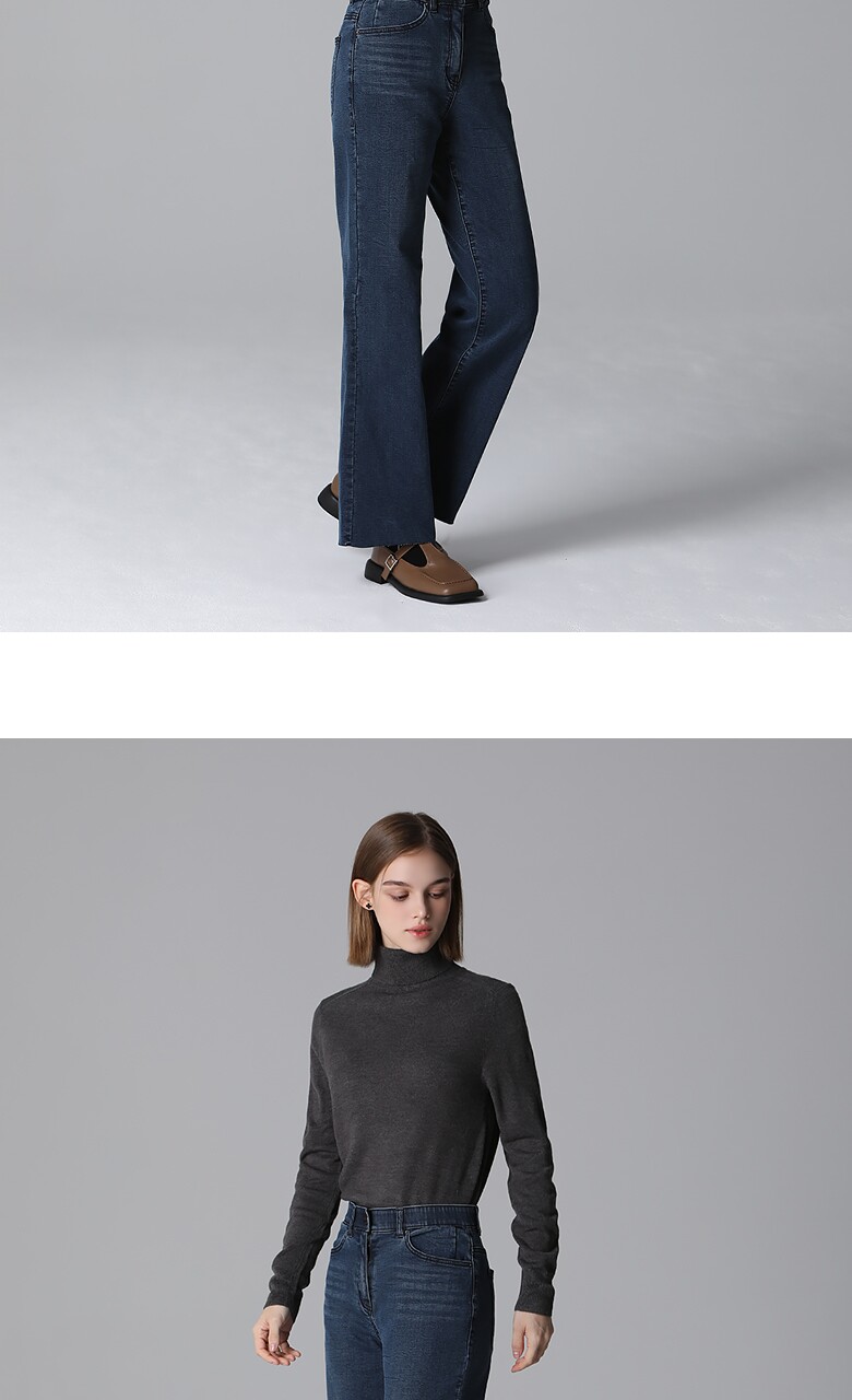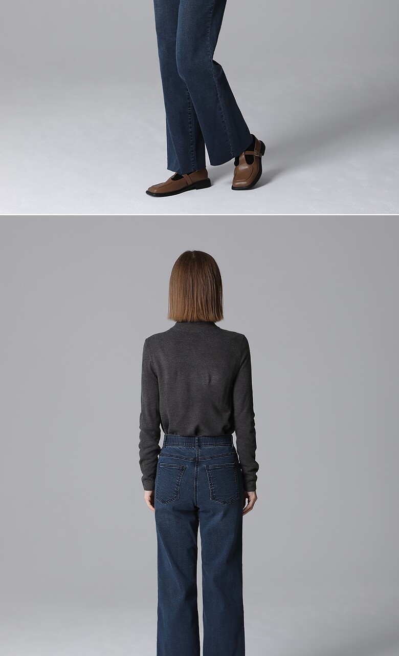 허릿단 밴딩으로 착용감이 편안하며 밑단 컷팅 디테일을 더한 세미 배기 핏 데님 팬츠입니다 기모 안감과 브랜드만의 고급원단으로 따듯하고 우수한 착용감을 선사합니다. 일자로 떨어지는 핏과 허릿단에 밴딩으로 허리가 답답하지