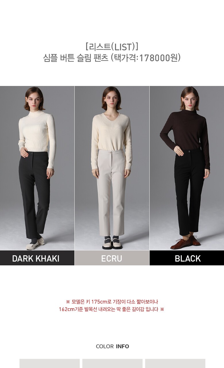 [리스트(LIST)] 심플 버튼 슬림 팬츠 (택가격:178000원)