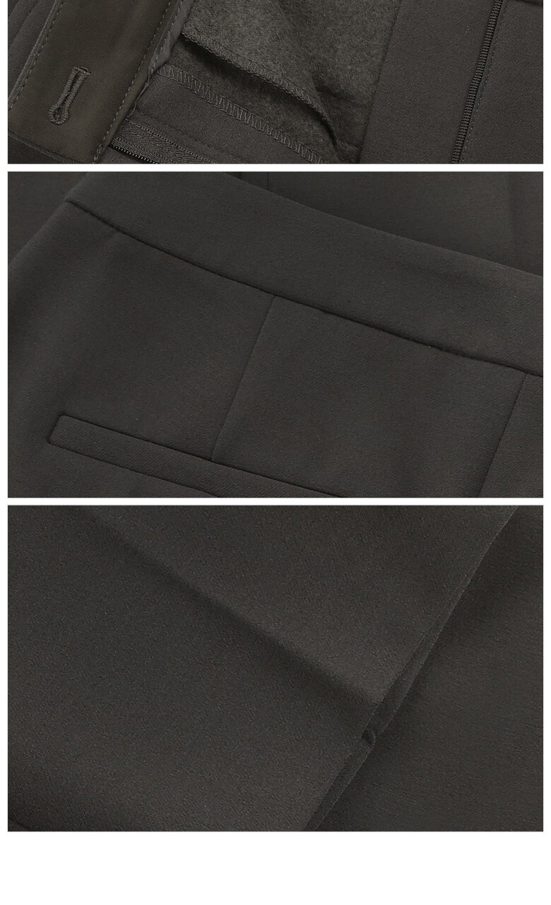 솔리드 컬러에 원버튼으로 심플한 디자인의 슬림 핏 팬츠입니다.
