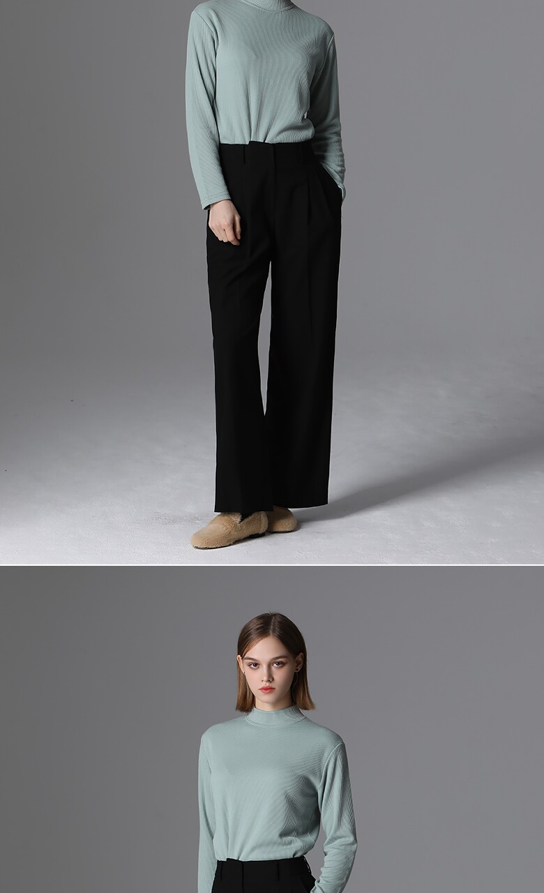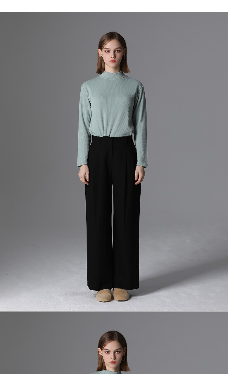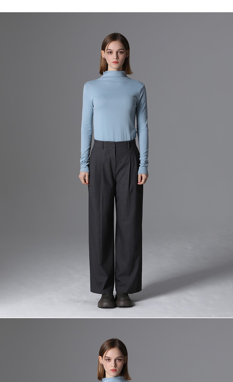 울 블렌드로 적당한 두께감의 편안하게 입기 좋은 핀턱 롱 와이드 팬츠입니다.