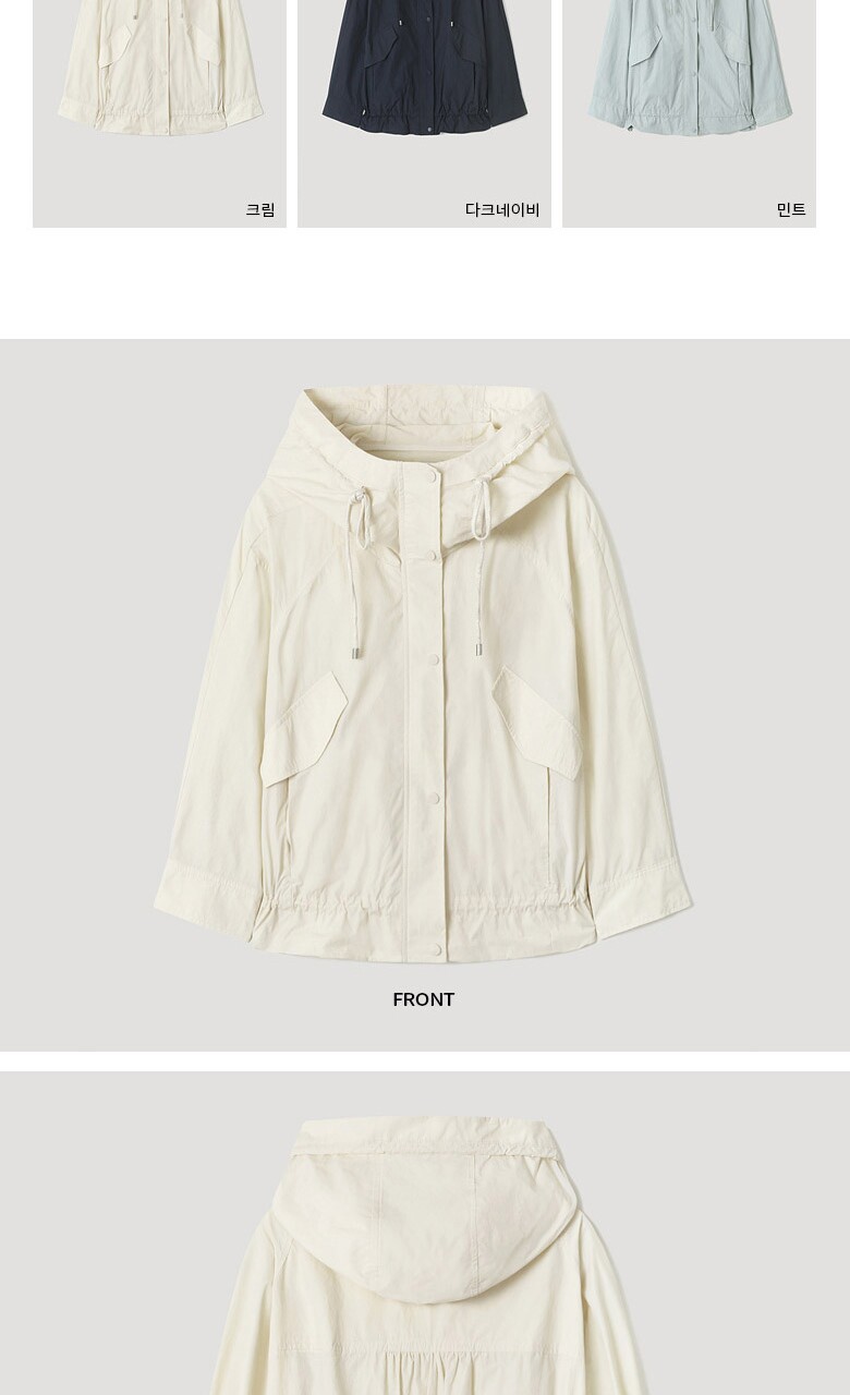 후드와 밑단의 드로스트링을 더한 래글런 슬리브 후드 점퍼입니다. 브랜드만의 고급소재로 안감의 쾌적하고 우수한 착용감을 선사합니다. 데일리하게 걸쳐입기 좋은 아우터로 추천드립니다.