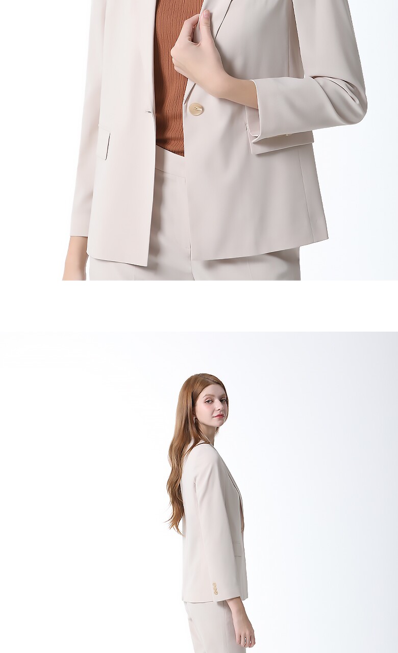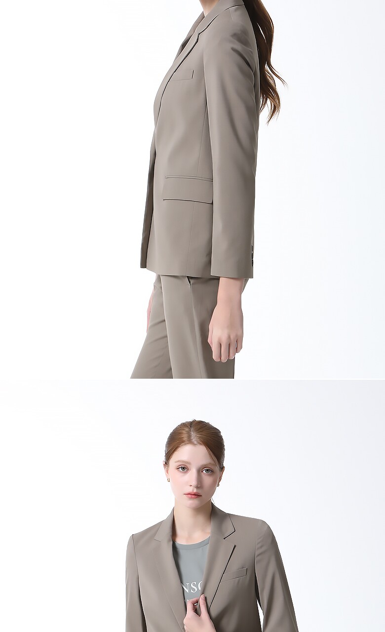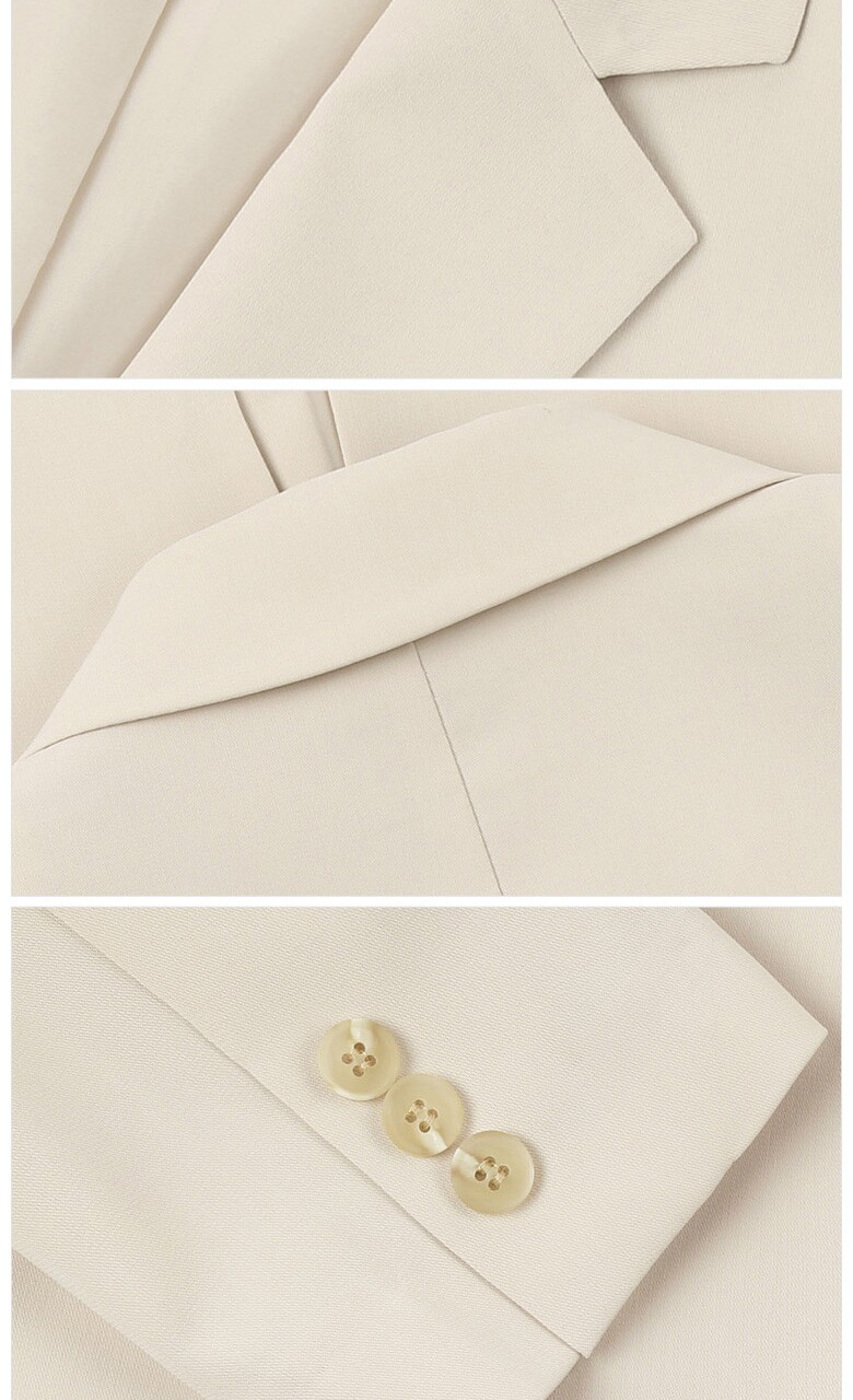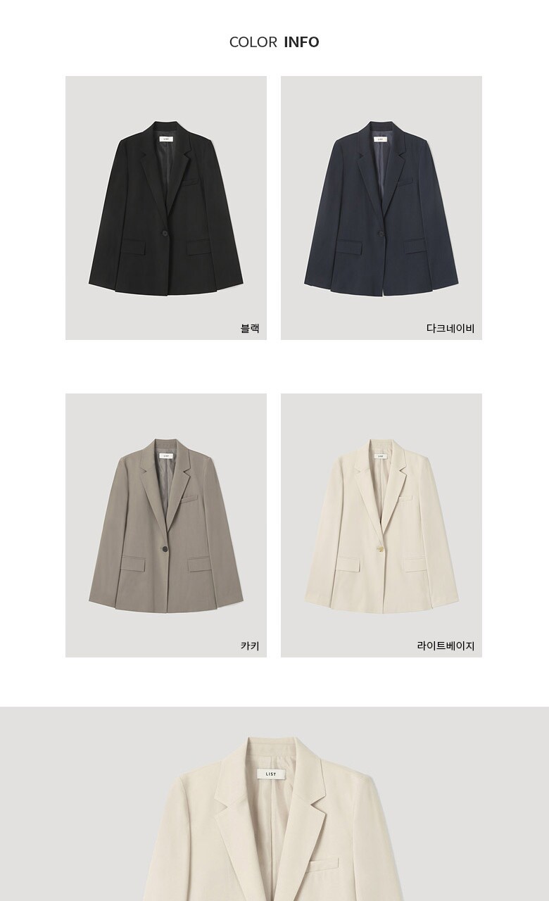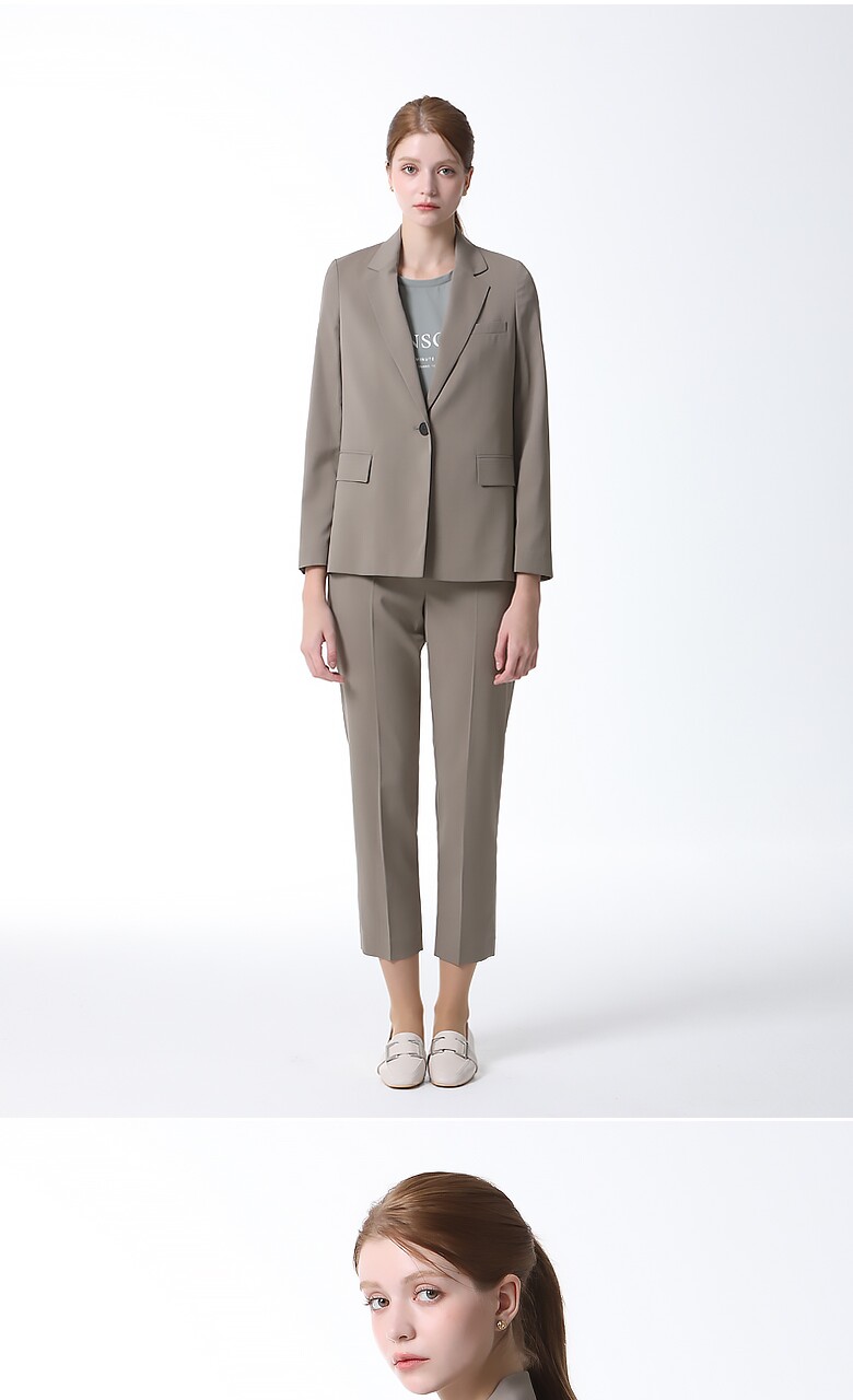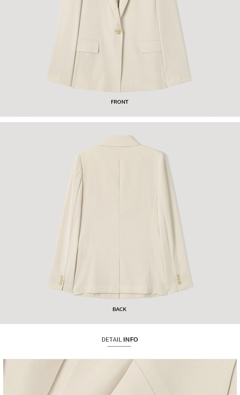 포멀한 무드의 컬러감과 미니멀한 디자인으로 멋스러운 원버튼 싱글 재킷입니다. 브랜드만의 고급소재로 안감의 쾌적하고 우수한 착용감을 선사합니다.
