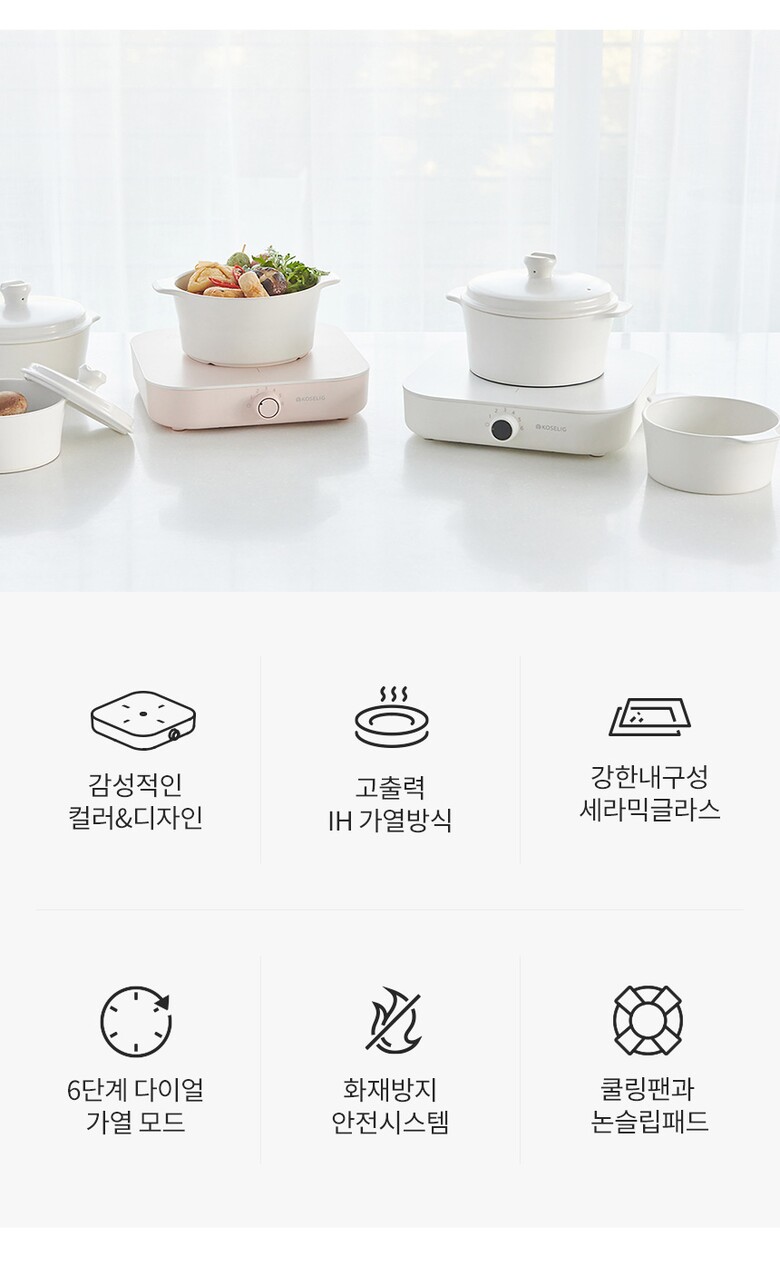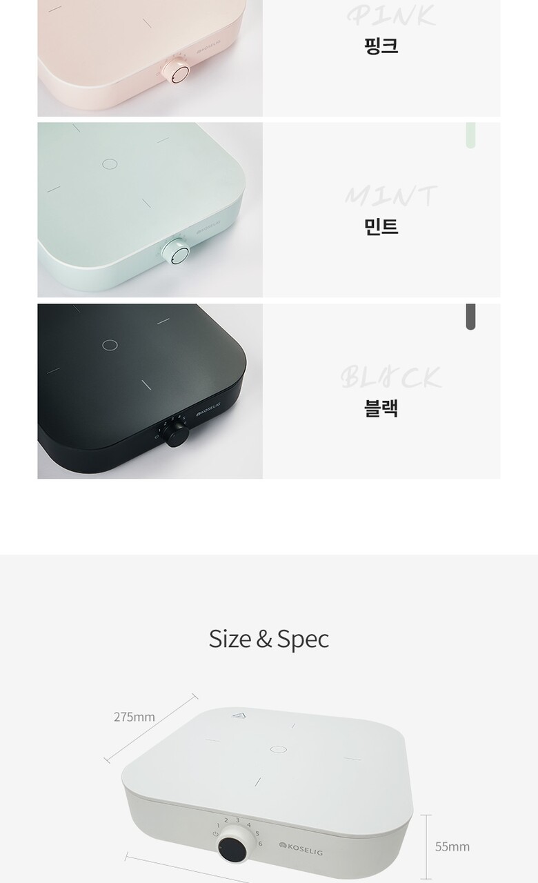 코슬리 IH-S21A-B 감성 1구 인덕션 위드 with 색상 4종 화이트 블랙 핑크 민트