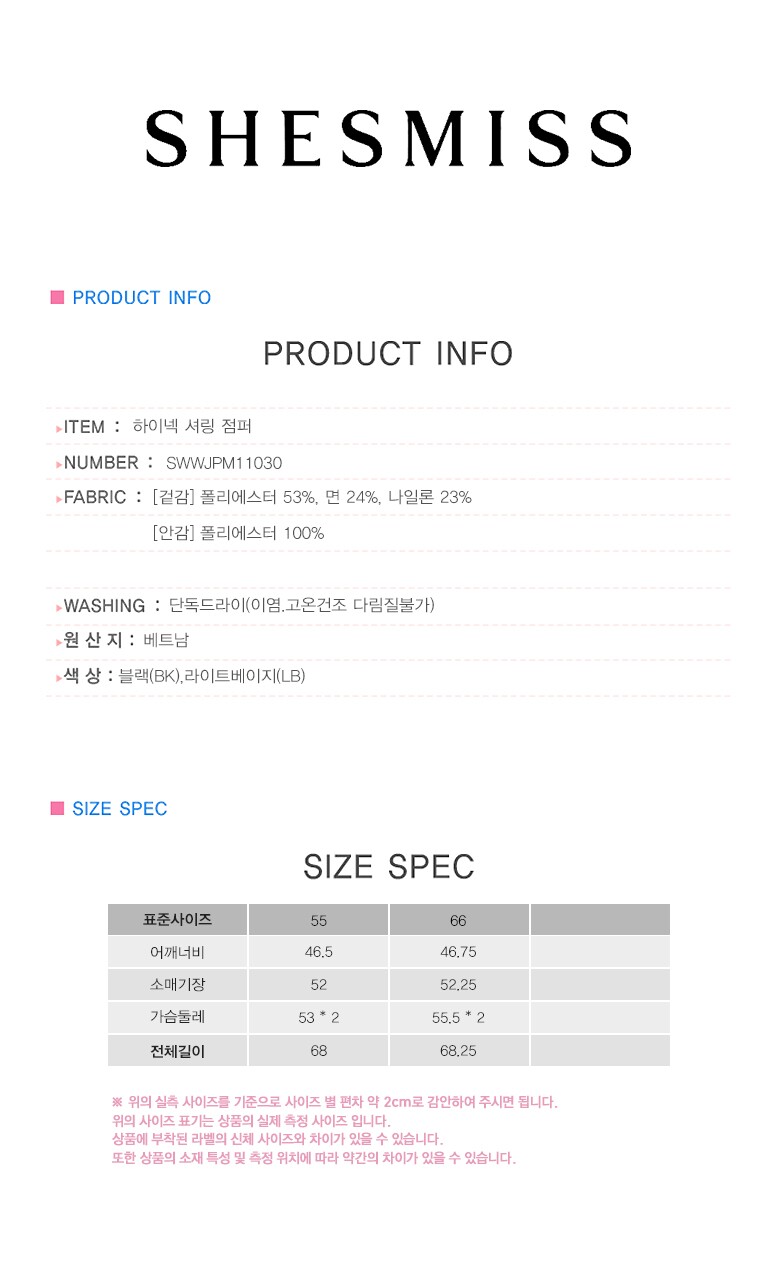 [쉬즈미스(SHESMISS)] 에디션 하이넥 셔링 점퍼 (택가격: 338000원)
