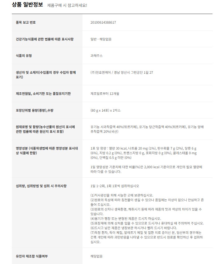 2. 생산자(수입자) (주)천호엔케어/경남 양산시 그린공단 1길 27