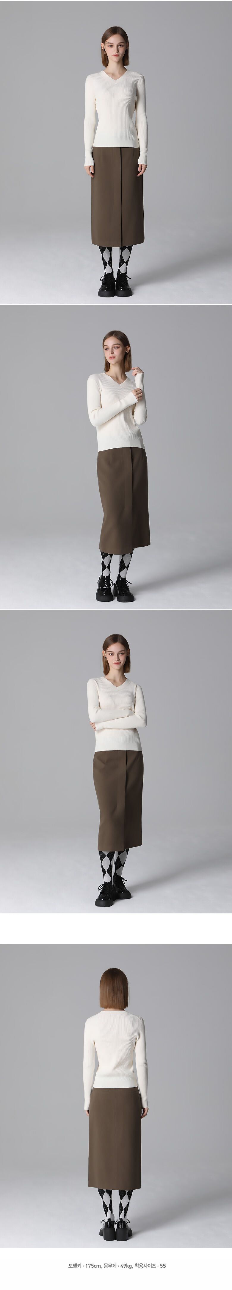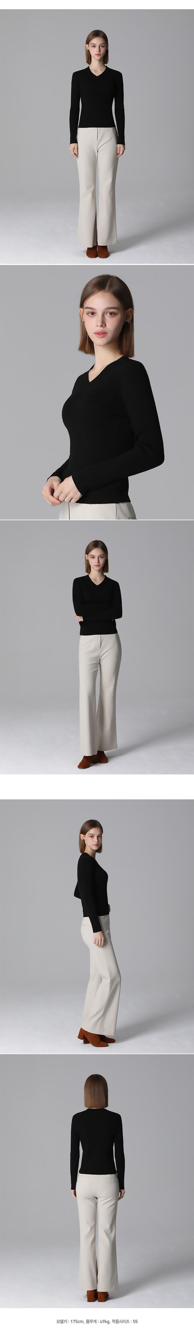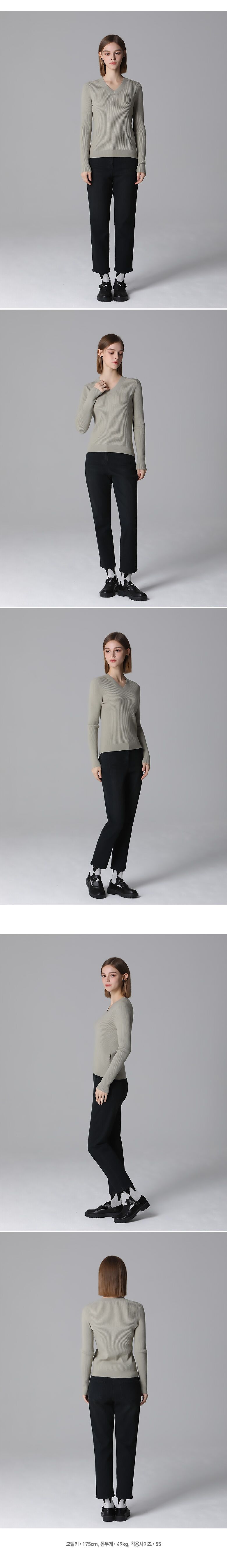 브이넥으로 목라인을 살려주며 니트 원단에 신축성이 좋고 약간의 두께감으로 따뜻하고 편하게 착용할 수 있는 아이템입니다