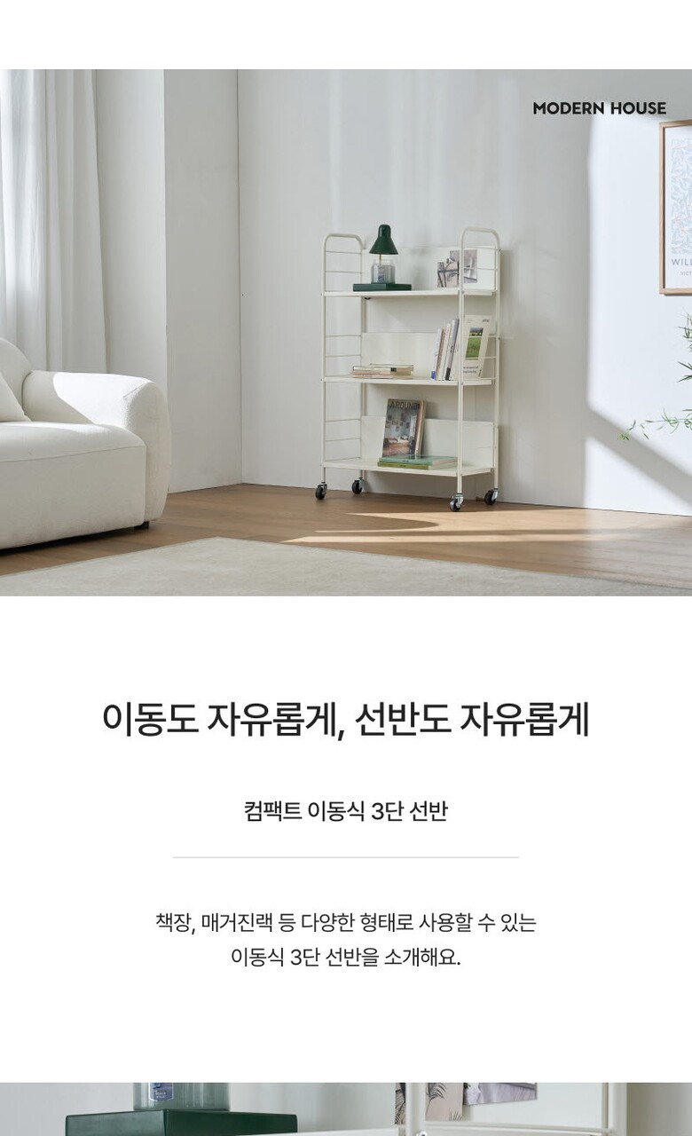 모던하우스 컴팩트 이동식 3단 선반 화이트 CF0625001
