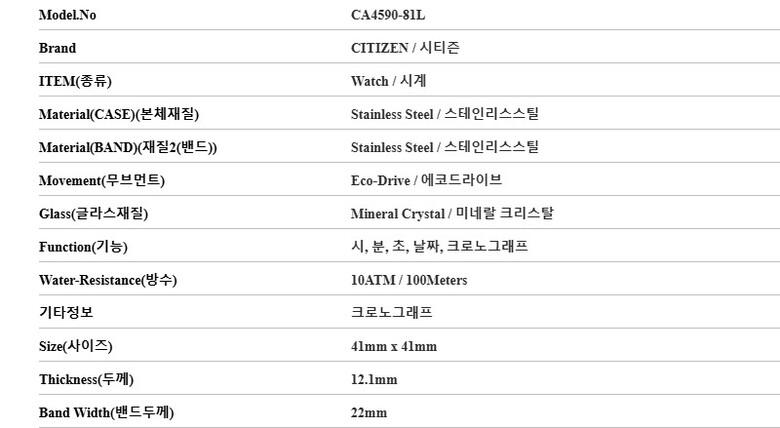 | 7. 주요 사양 | 스테인리스스틸 시계 에코드라이브 |