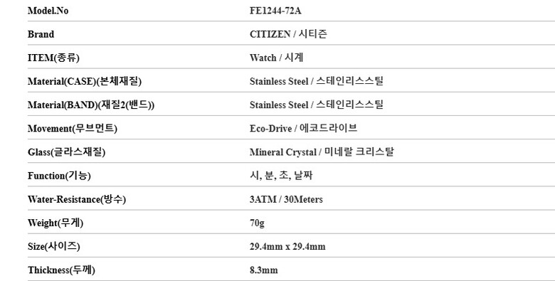 | 7. 주요 사양 | 스테인리스스틸 시계 에코드라이브 |