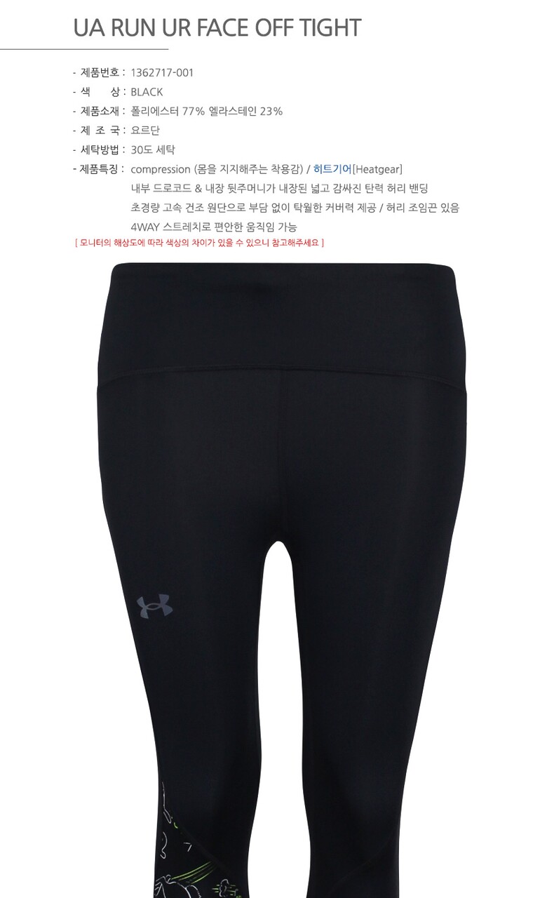 언더아머 여성 기능성 런 유어 페이스오프 타이즈 레깅스 1362717-001