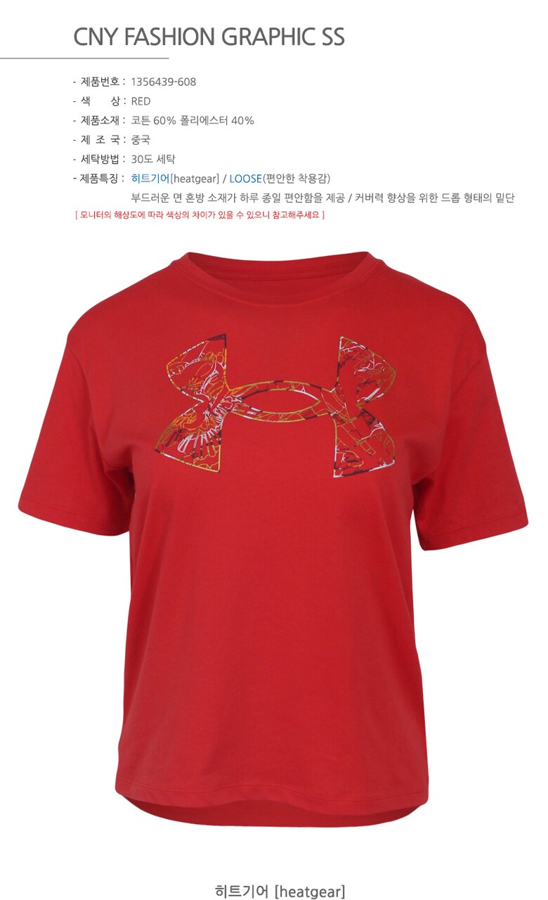 언더아머 여성 CNY 패션 그래픽 히트기어 반팔 티셔츠 1356439-608
