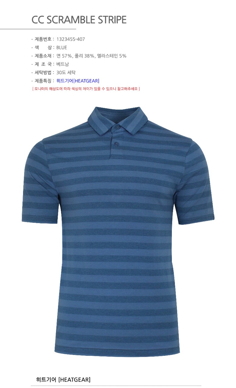 언더아머 남성 CC 스크램블 스트라이프 히트기어 반팔 카라 티셔츠 골프웨어 1323455-407