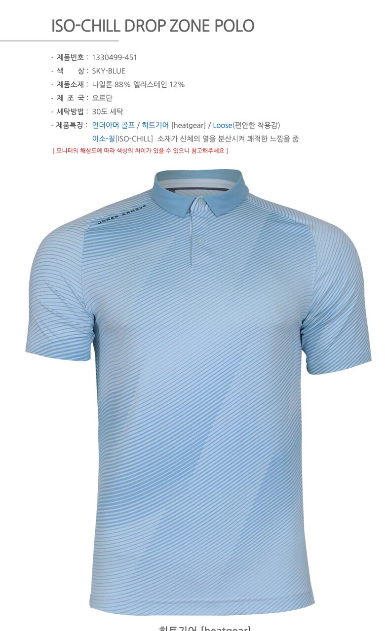 언더아머 남성 이소칠 드롭존 히트기어 카라 반팔 티셔츠 골프웨어 1330499-451
