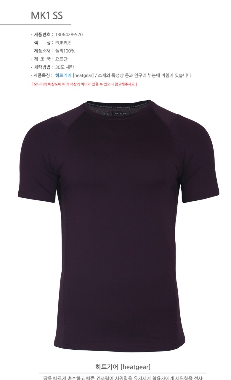 언더아머 남성 MK1 히트기어 헬스 피트니스 반팔 티셔츠 1306428-520