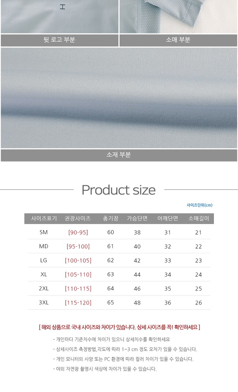 3. 치수 SM,MD,LG,XL,2XL,3XL