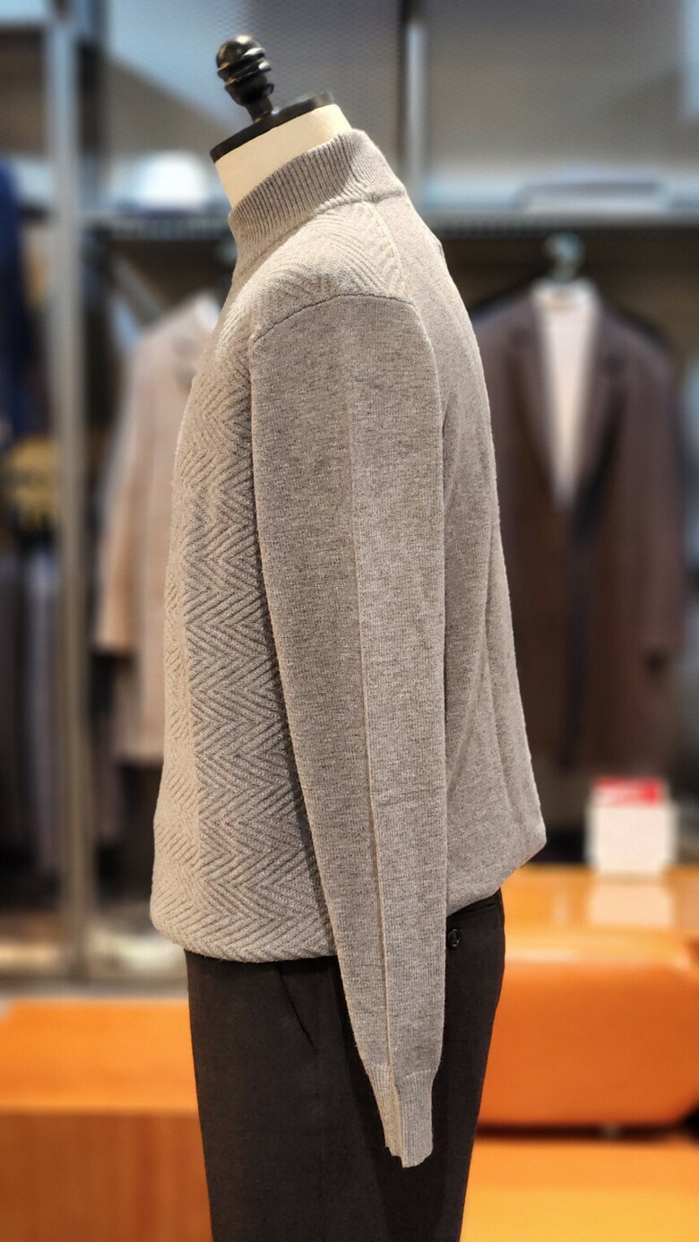 그레이 컬러감으로 모든 아우터에 이너웨어로 잘 어울리는 컬러감이 인상적인 상품입니다. 하이엔드급 퀄리티의 상품으로 다양한 코디에 용이한 니트입니다.