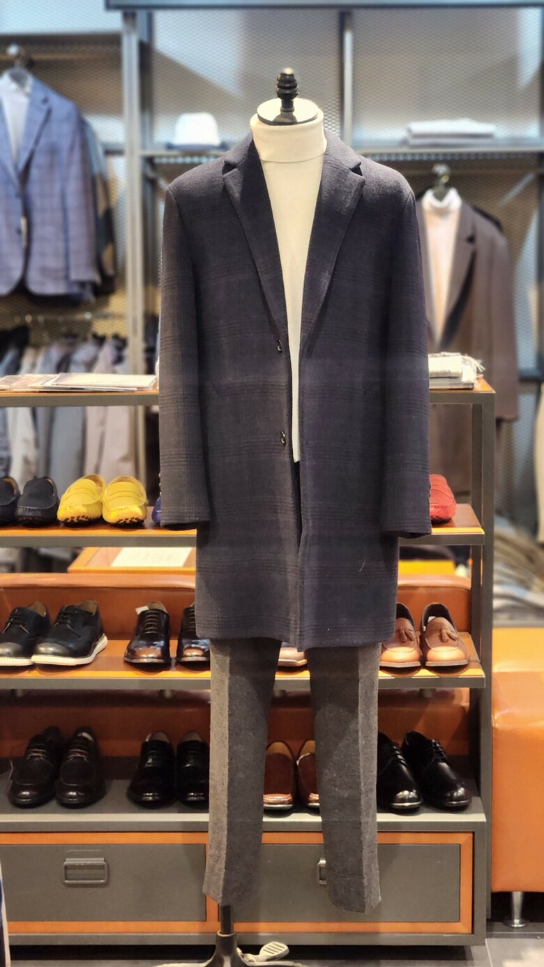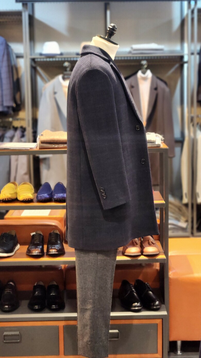 F/W 워모&바루리 네이비 체크 세미오벗핏 코트IFLJHJ12