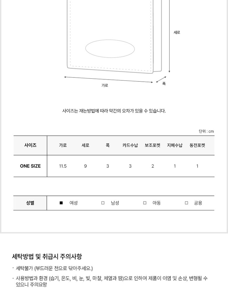 3. 치수 | 가로 11.5cm X 세로 9cm X 폭 3cm |