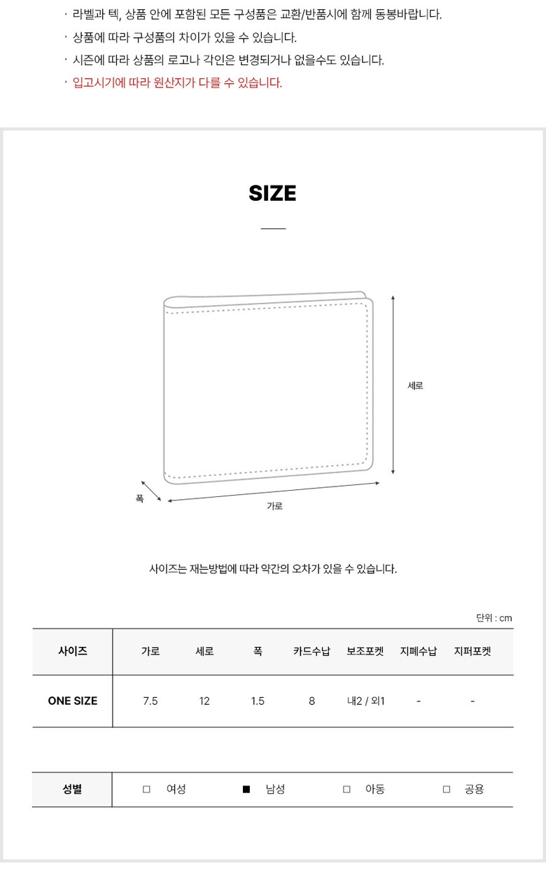 3. 치수 가로 7.5cm X 세로 12cm X 폭 1.5cm