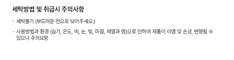 6. 취급시 주의사항 열이나 직사광선, 습기에 주의하고, 부드러운 소재를 사용하여 닦아주시기 바랍니다.