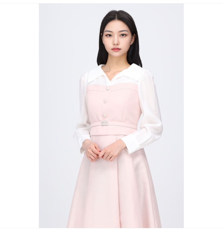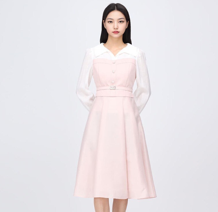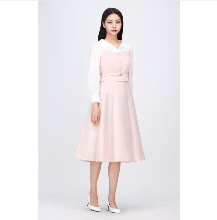 배색 디자인으로 셔츠와 스커트를 레이어드한 듯한 디자인이 매력적이며|*|