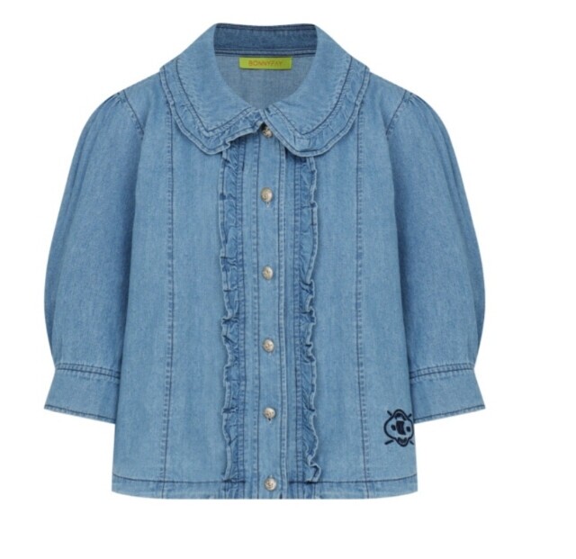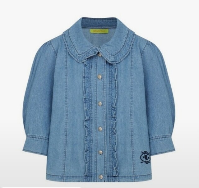 여성스러운 느낌의 데님 셔츠블라우스입니다.