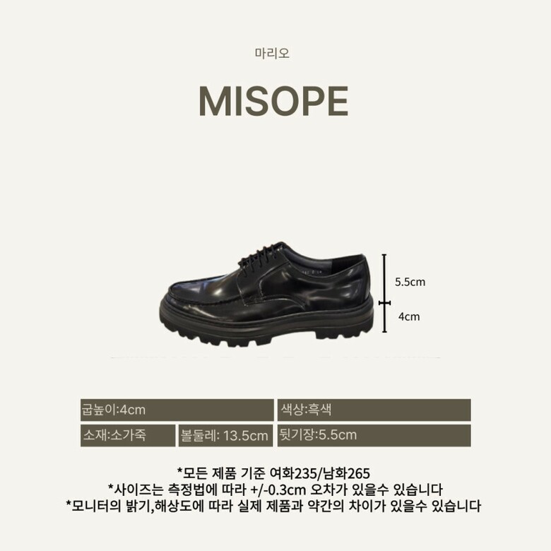 by미소페 남성 와이드 U팁 더비슈즈(4cm)122411006