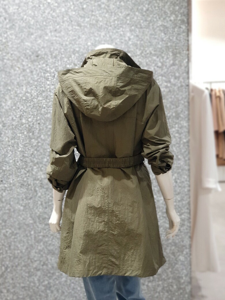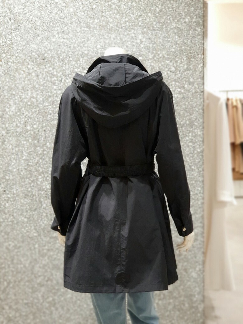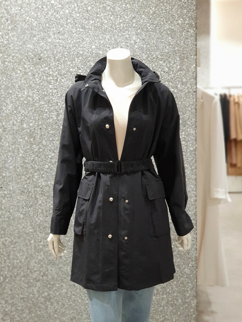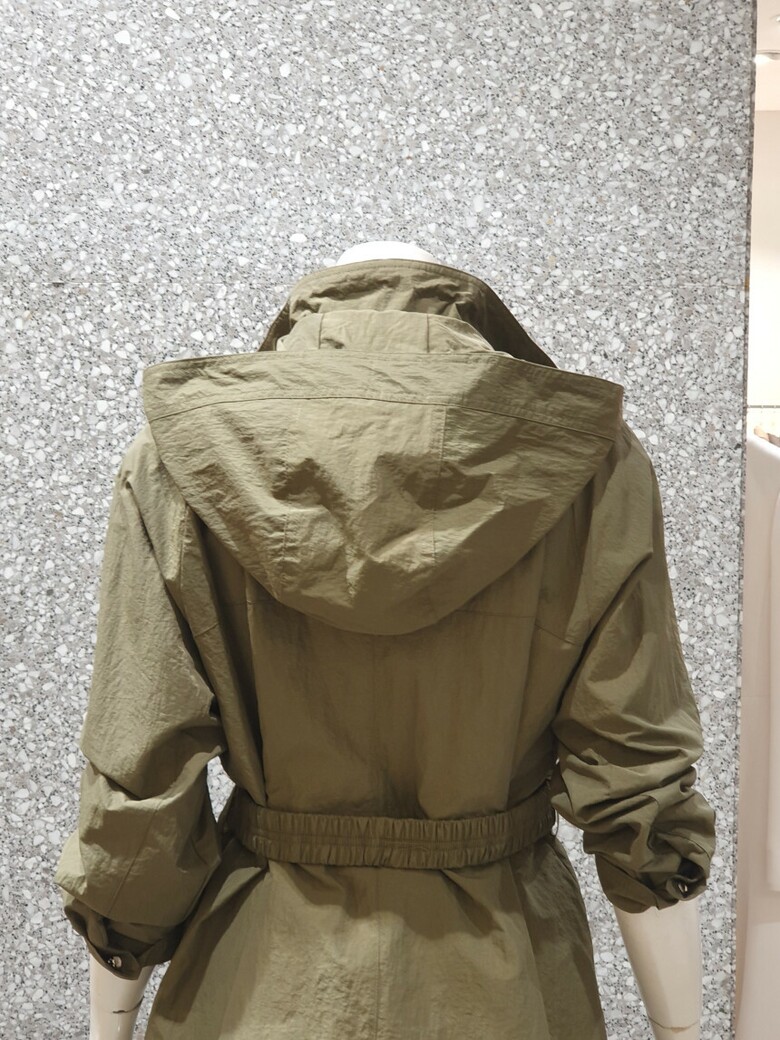 다양하게 스타일링하기 좋은 후드 트렌치코트입니다.