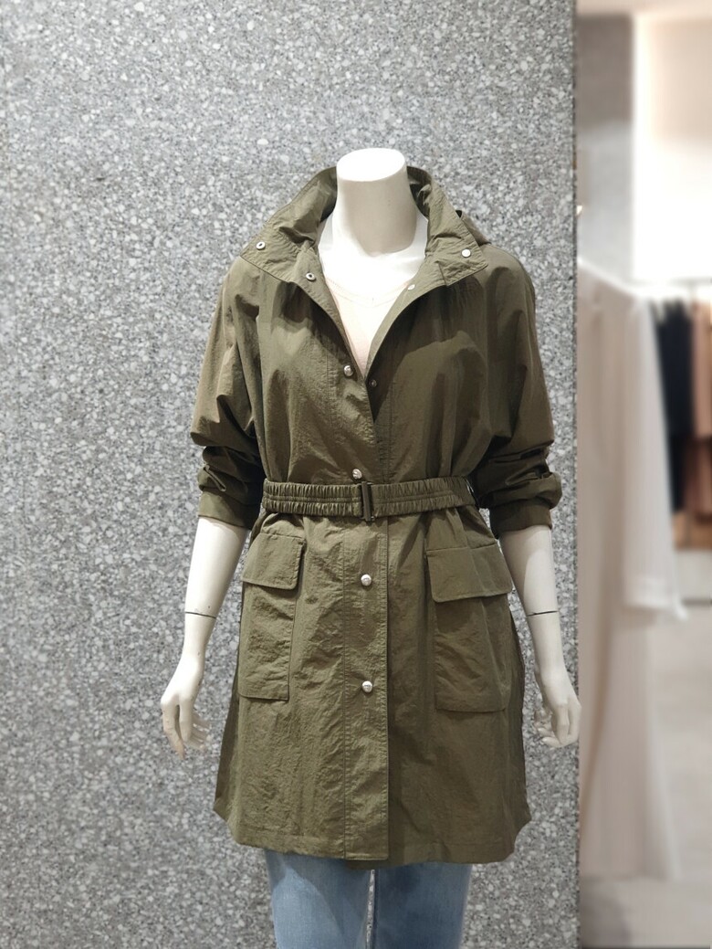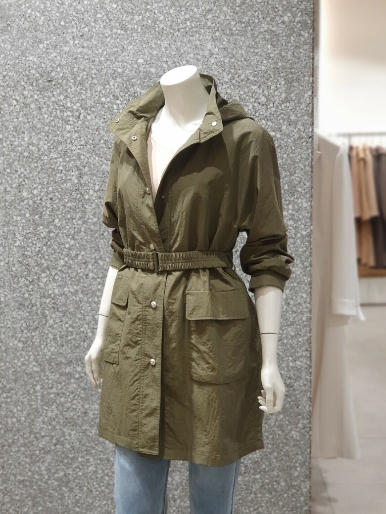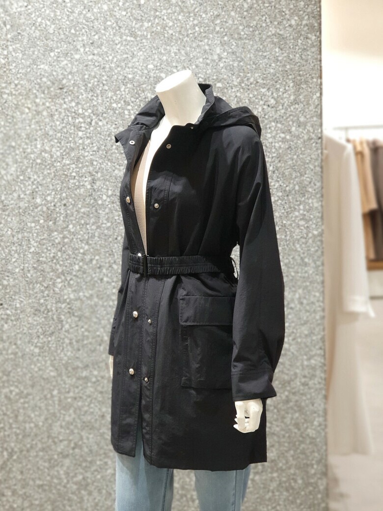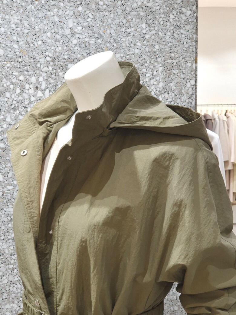 다양하게 스타일링하기 좋은 후드 트렌치코트입니다.