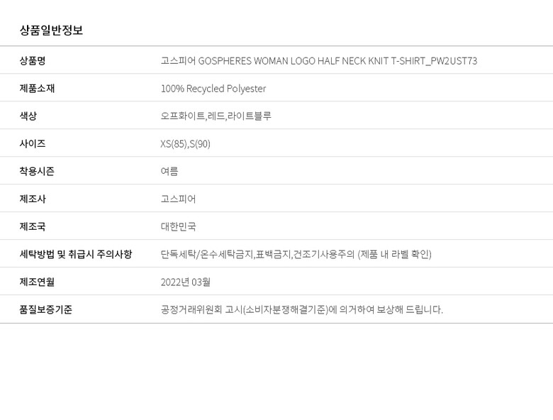 6. 세탁방법 및 취급시 주의사항 단독세탁/온수세탁금지,표백금지,건조기사용주의 (제품 내 라벨 확인)